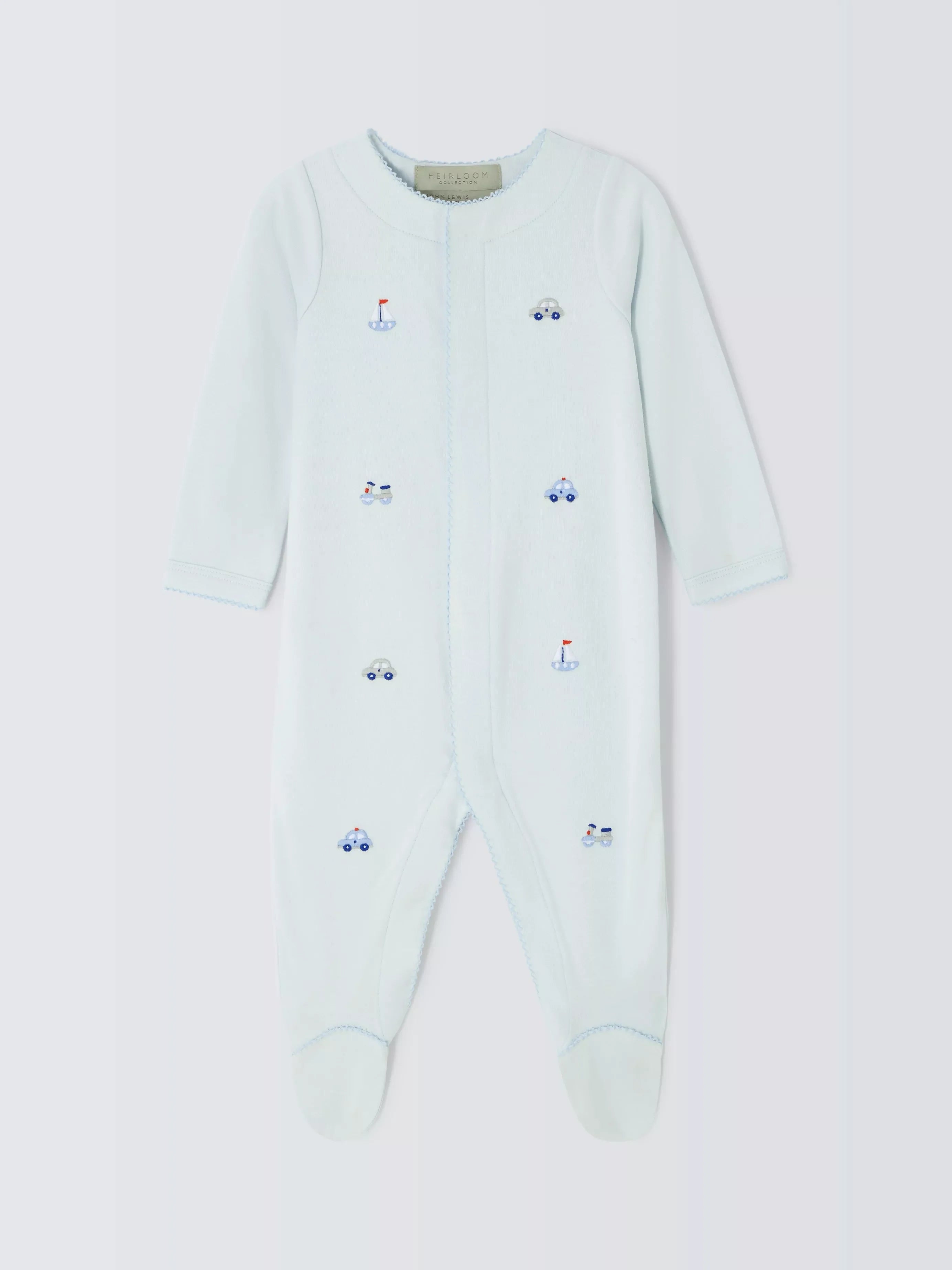 Get your little one ready for bed with this sweetly soft sleepsuit from our Heirloom Collection, designed with delicate scalloped edges and finished with sweet transport-themed embroidery.