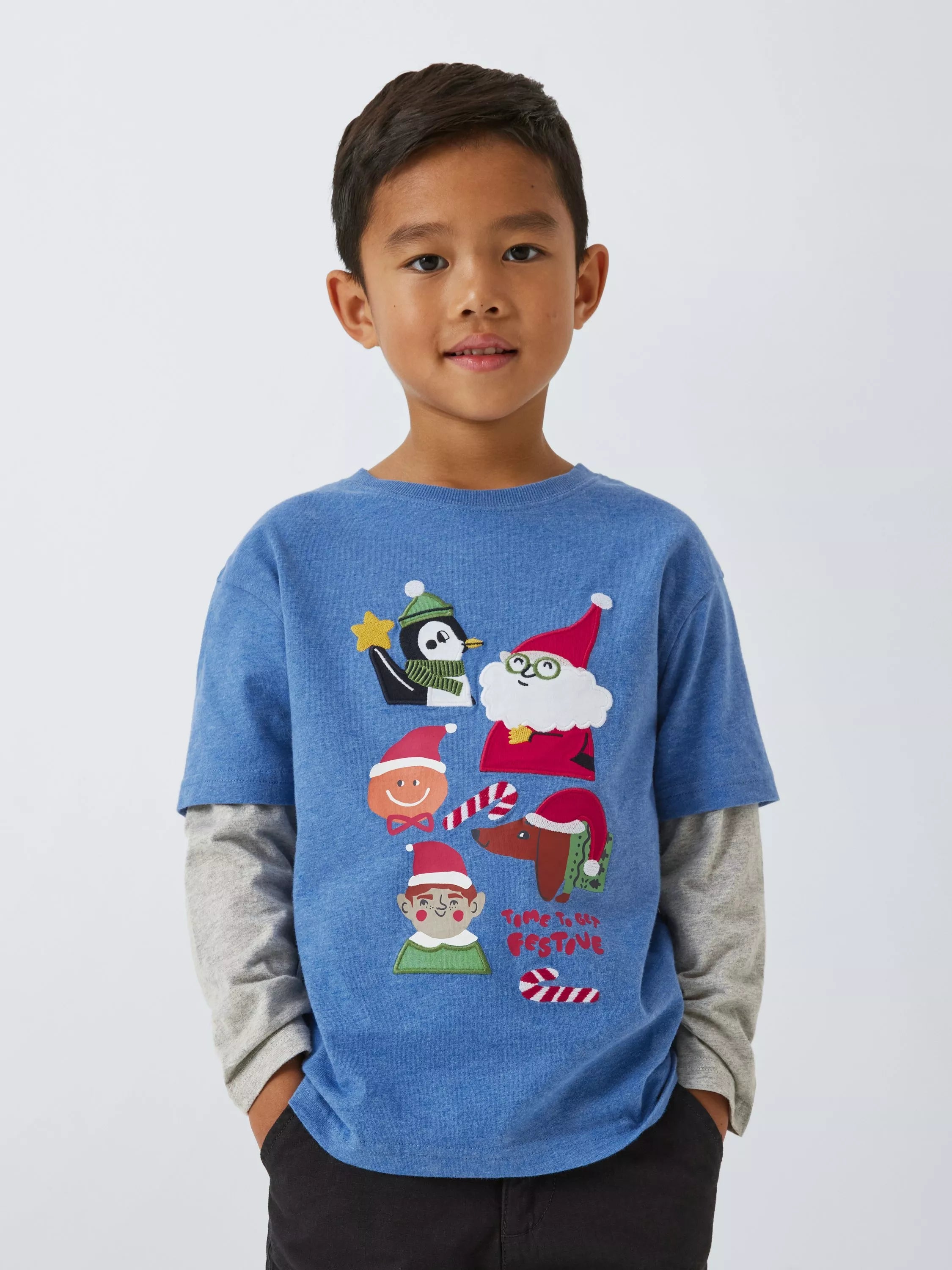 This adorable John Lewis Kids' Festive Friends mock sleeve top is perfect for adding a touch of festive cheer to your little one's wardrobe.