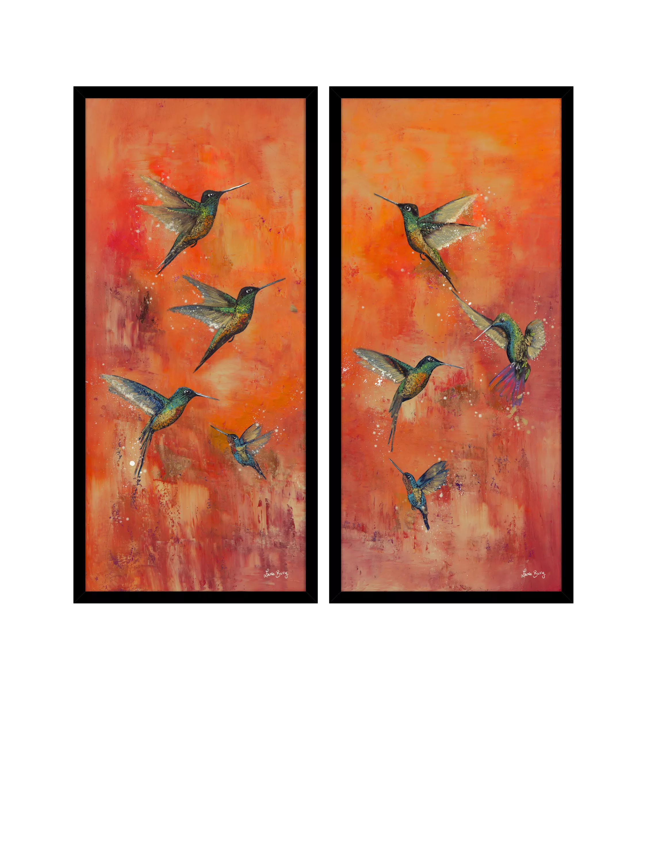 Pair of prints, 'Nature's Realm I', by artist Laure Bury. Finished with a hand-applied artist's texture gel and presented in gold-toned frames, ready to hang on your wall.