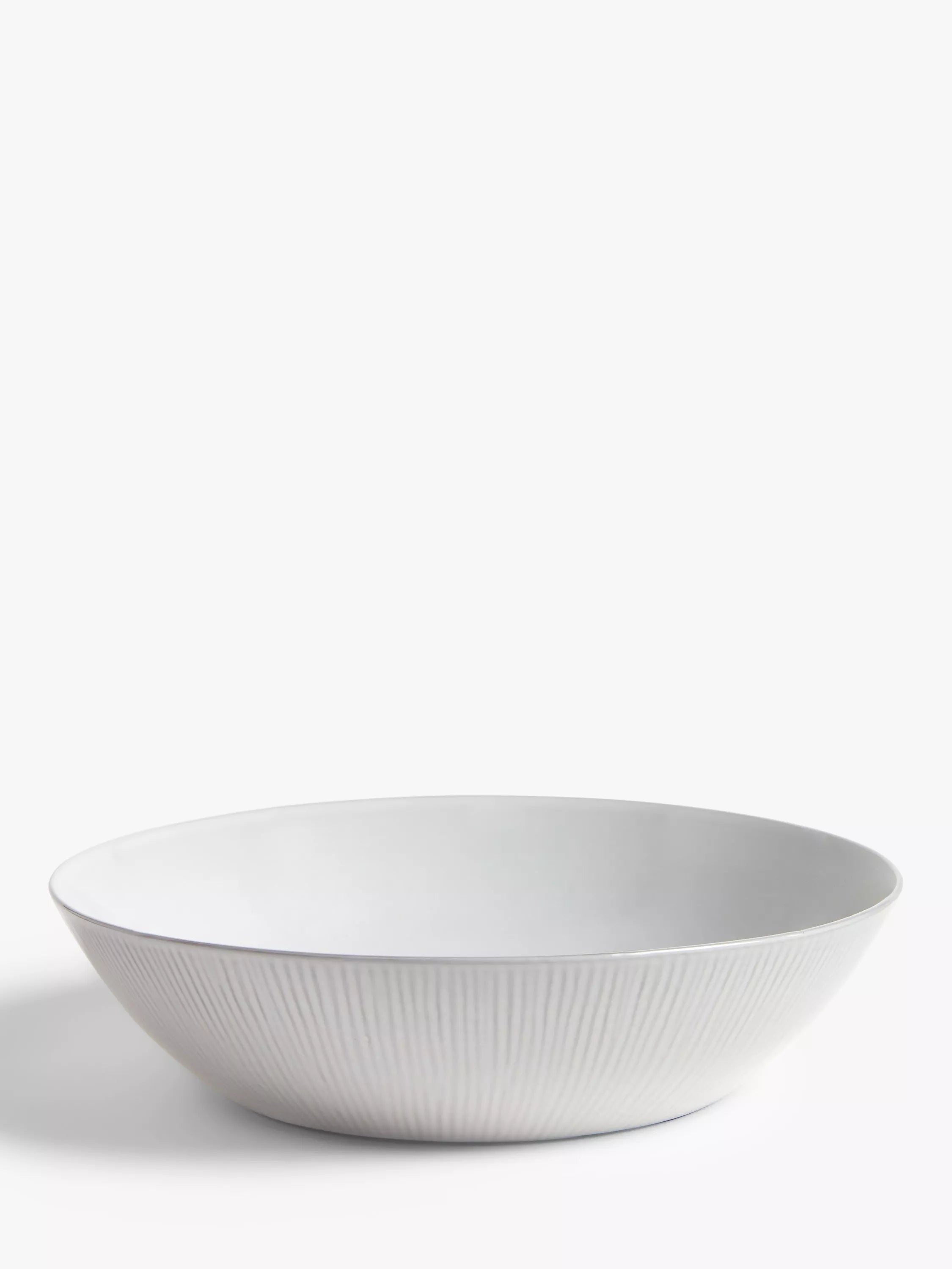 Elevate your dining experience with this stylish and practical John Lewis Leckford stoneware serving bowl. Its handcrafted embossed pattern, inspired by nature, adds a touch of elegance to any table setting. Perfect for everyday use, this durable bowl is both microwave and dishwasher safe.