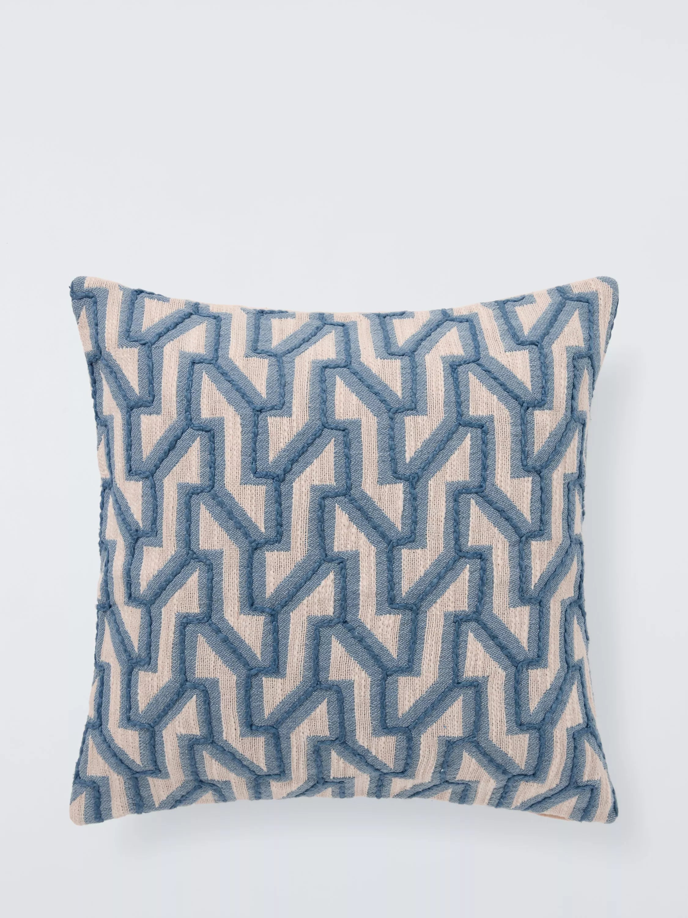 An intriguing linked weave design is emphasised by added rows of embroidery, for a contemporary geometric cushion that will look great in modern surroundings.