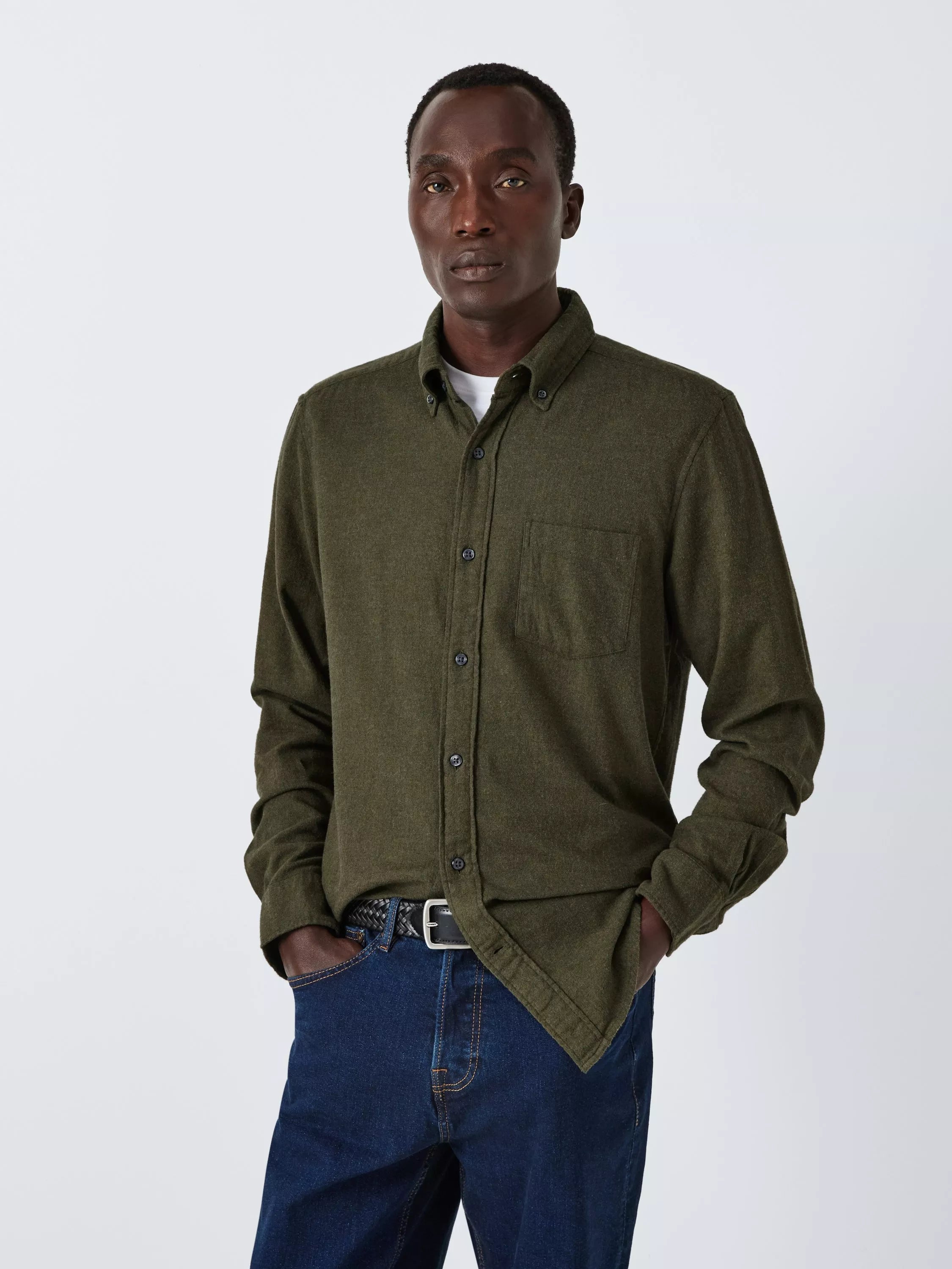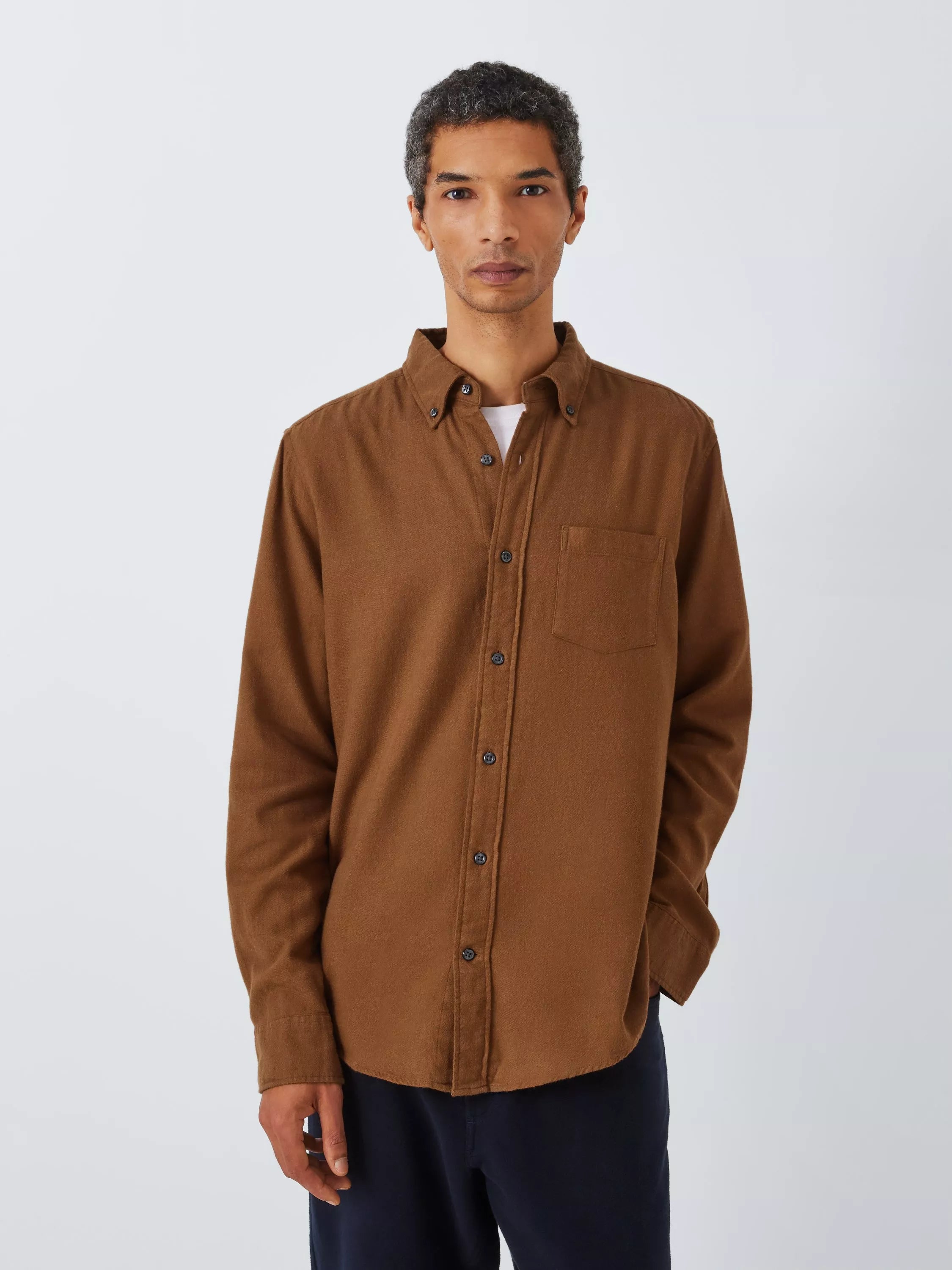 Soft and warm plain flannel shirt in our regular fit. Styled with one patch pocket, a button-down collar and a curved hem for extra coverage.