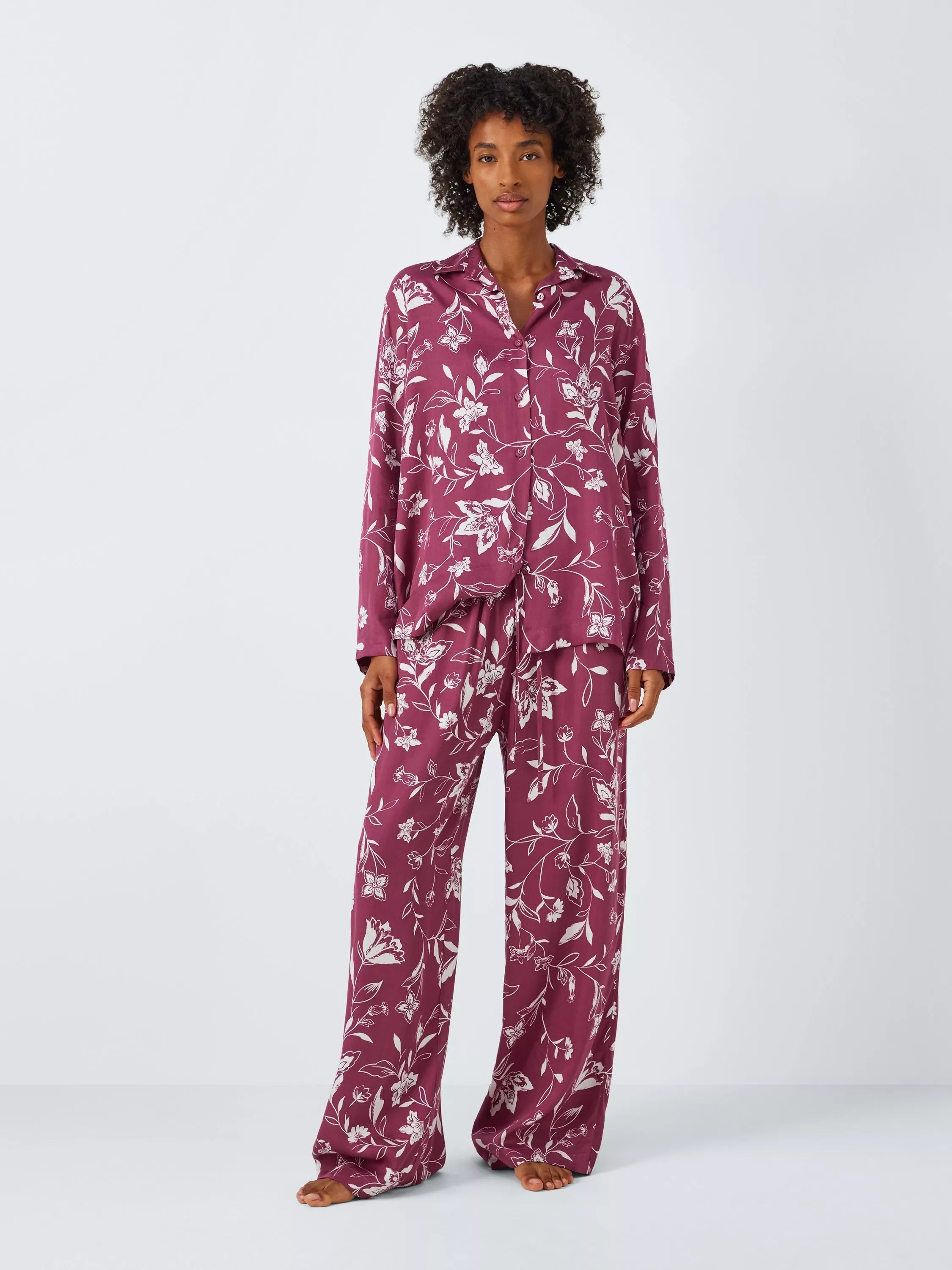 Beautifully adorned with a batik style floral print, this modal set comes in a 2 pieces. The shirt top features a smart collar and fabric covered buttons whilst the bottoms have side pockets and a fully elasticated waistband.