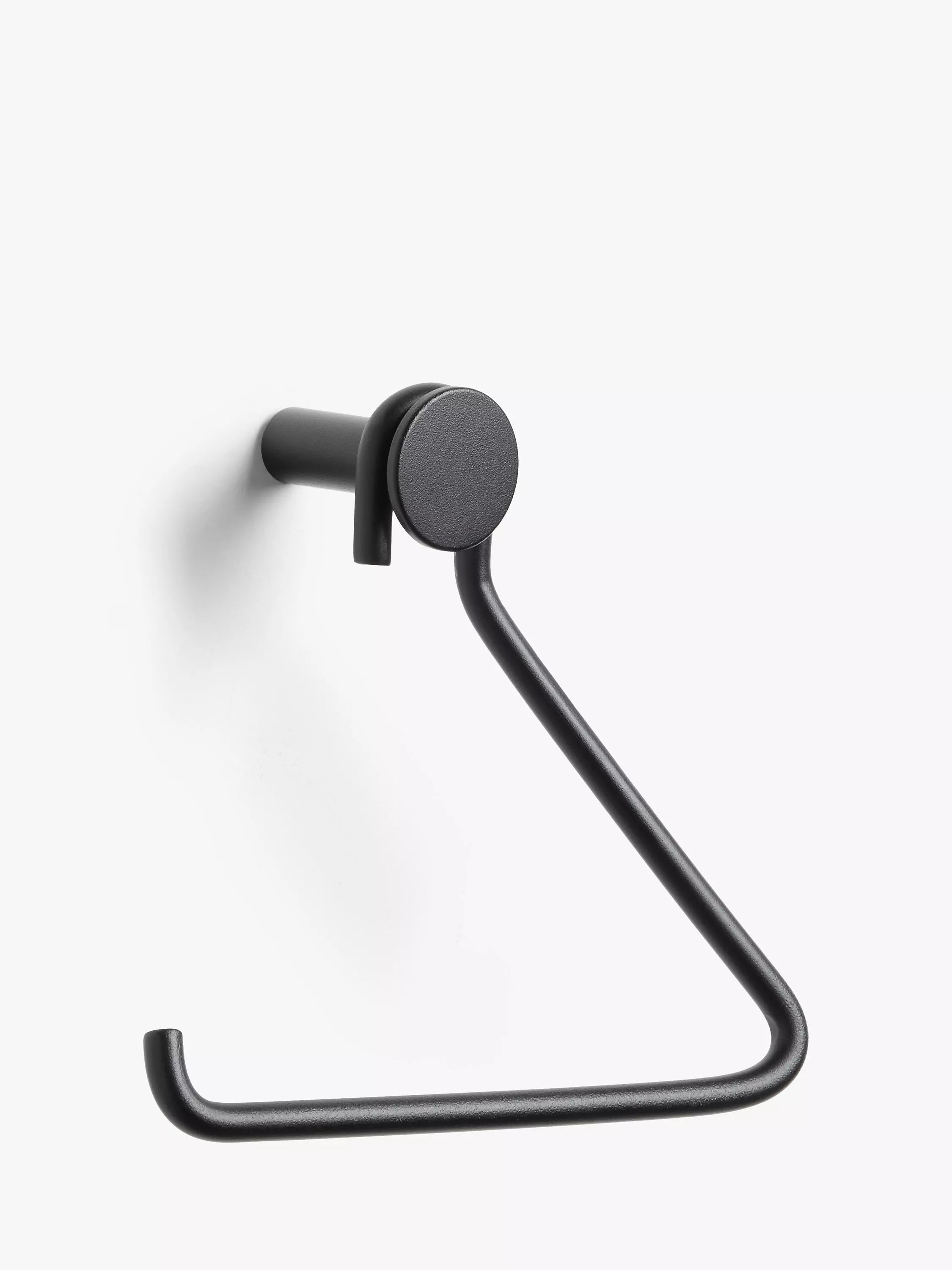 A toilet roll holder with a smart and simple no-frills design and matt black finish.