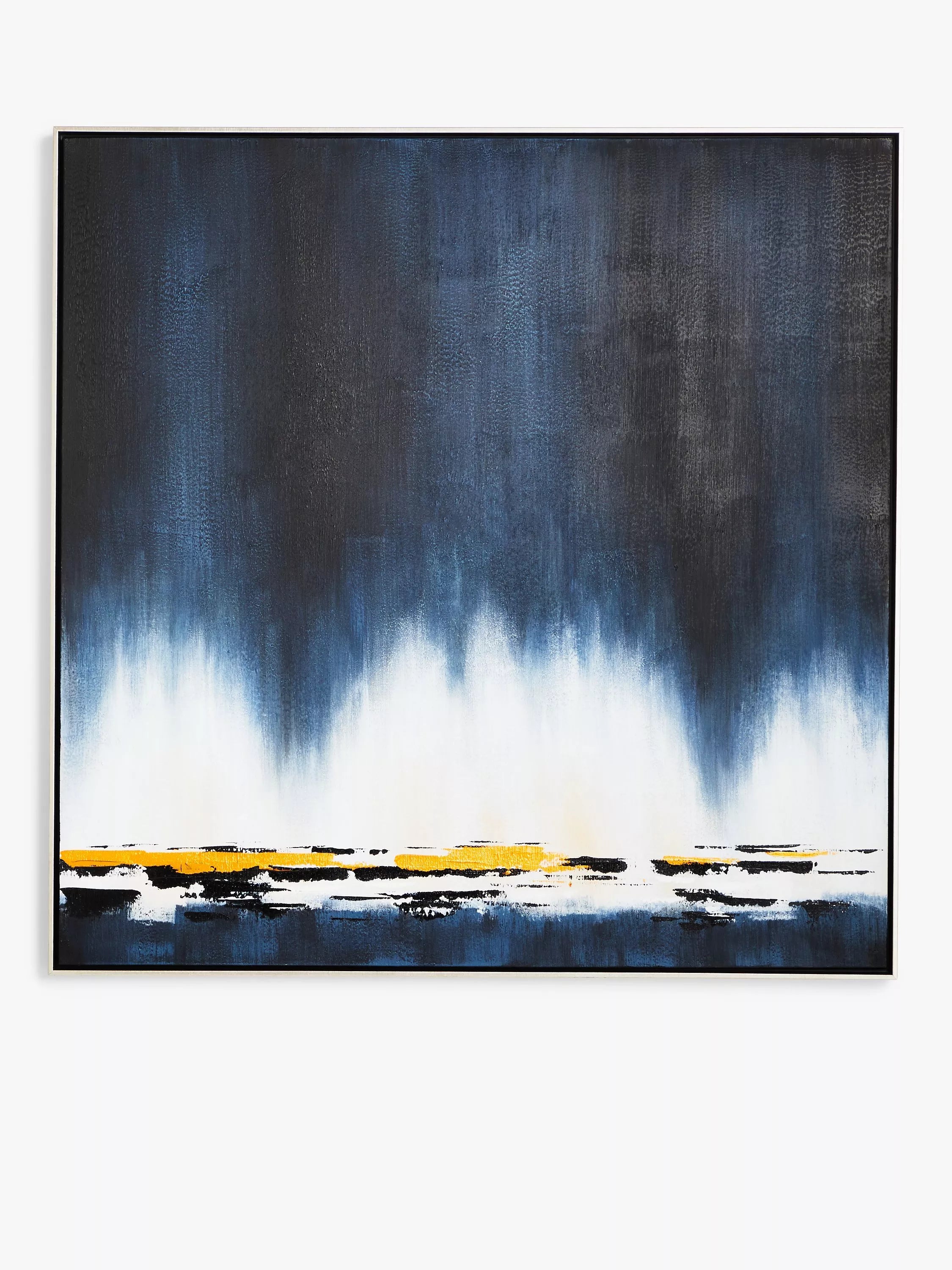 A modern abstract canvas, 'Midnight Skyline' is finished with a hand-painted acrylic texture. It's framed and ready to wall mount by the fittings on the reverse side.
