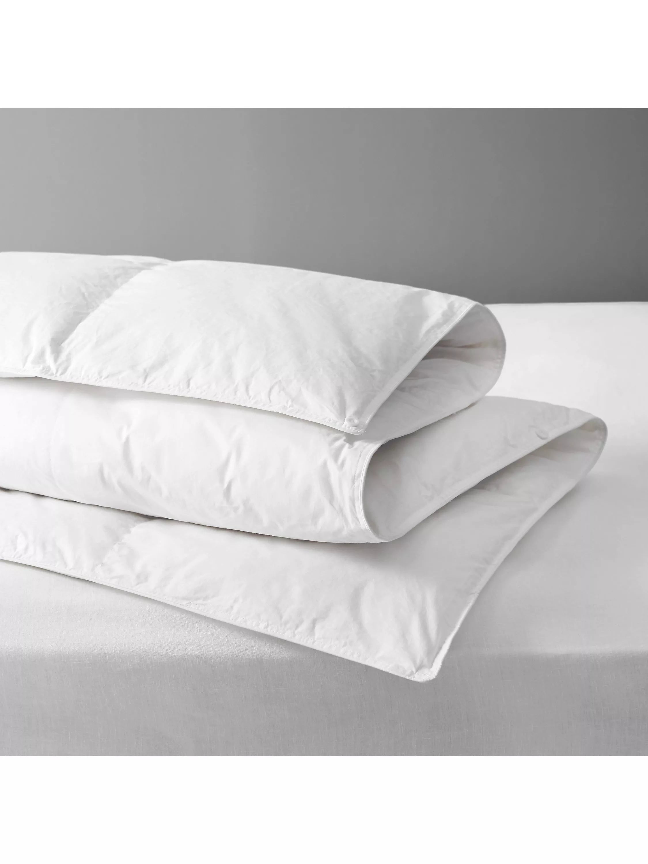 Enjoy luxurious comfort with this John Lewis 4.5 Tog duck down duvet, perfect for a restful night's sleep. Made with high-quality British duck down, it's softer, loftier, and lighter than other duvets, offering optimal warmth without the weight. This duvet is sustainably sourced and suitable for those with dust mite allergies.