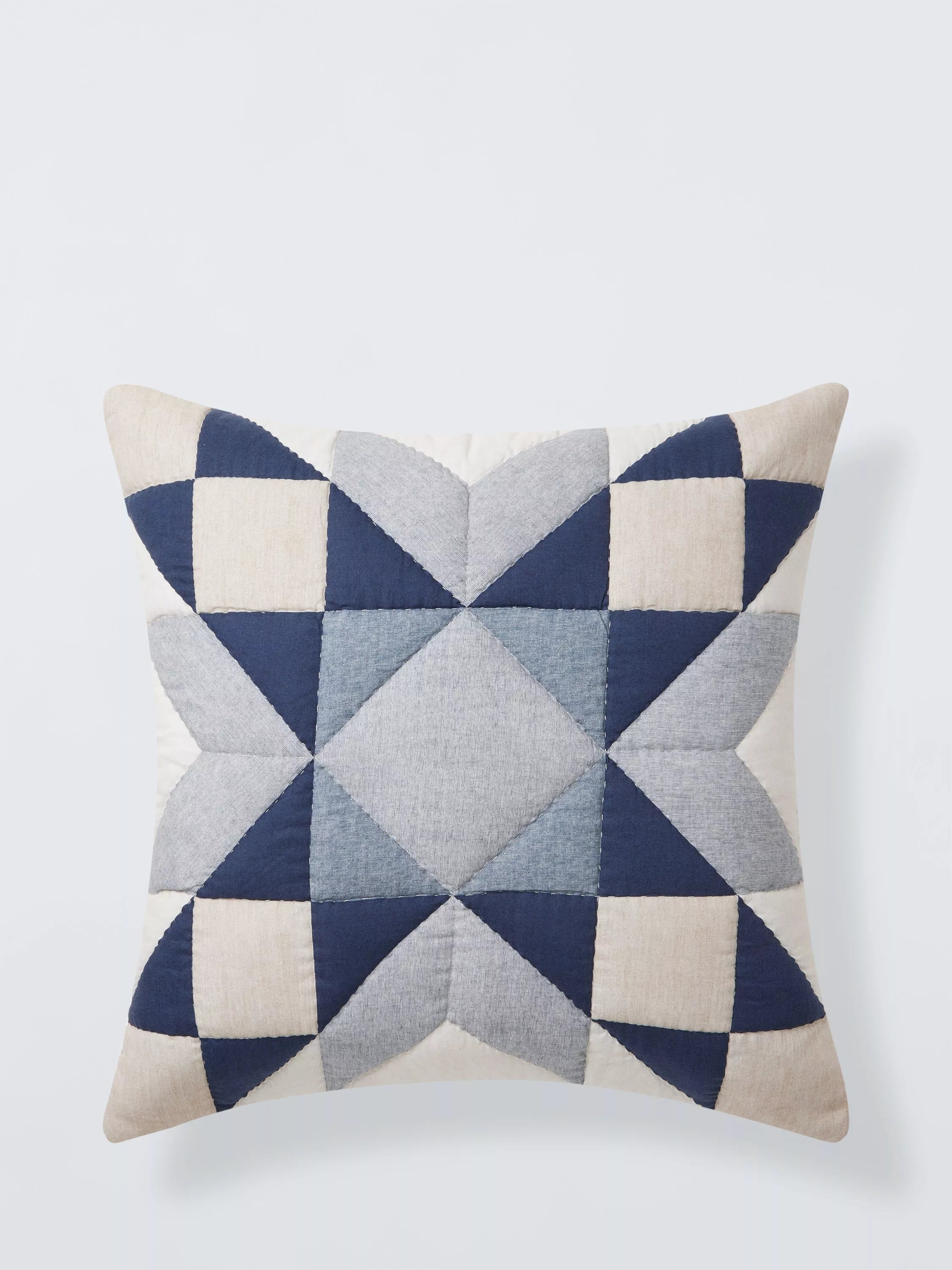 Traditionally quilted, the patchwork blocks on this plump cushion form a simple star shape. The reverse is plain.