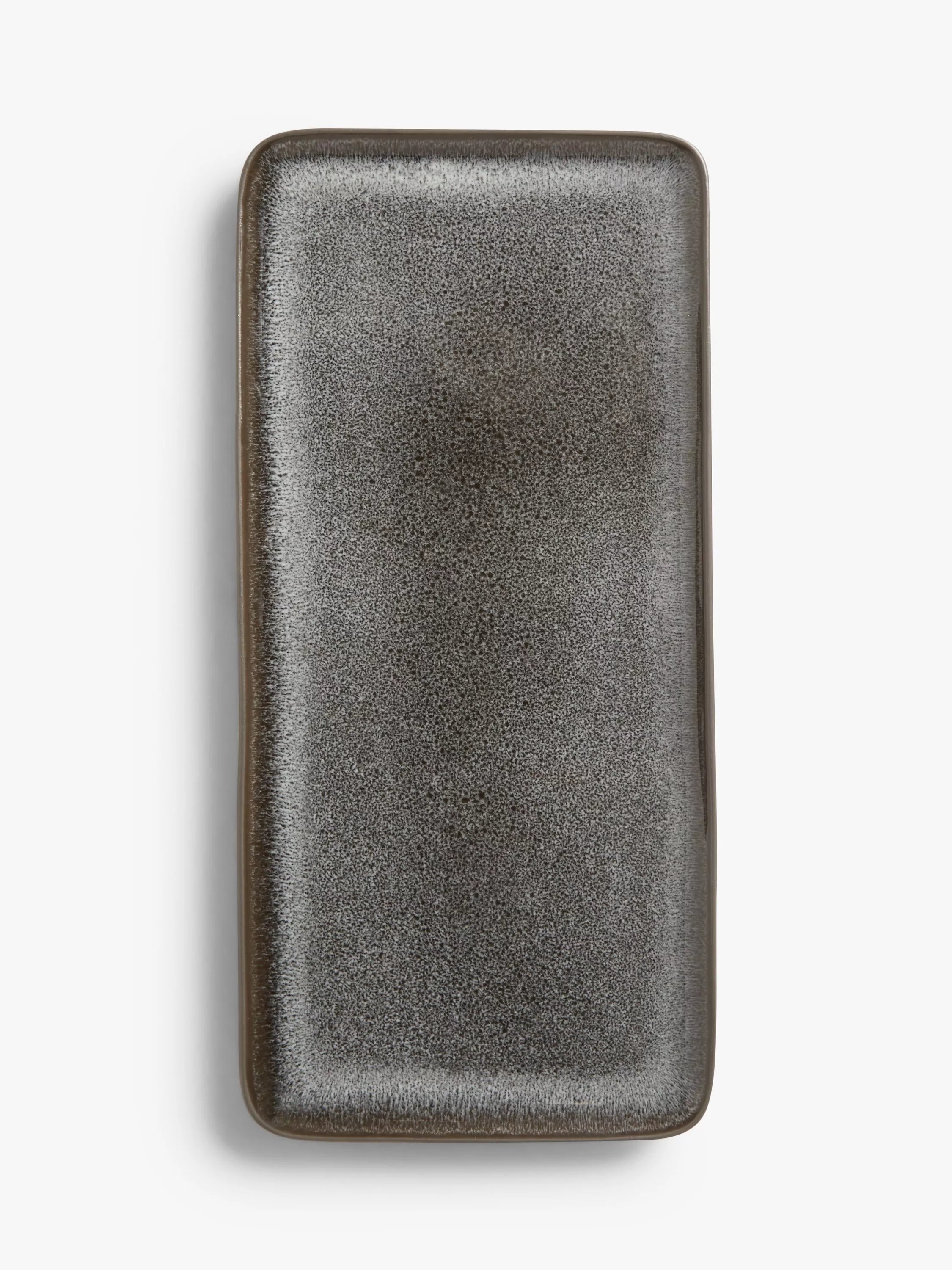 One of a kind, this ceramic rectangular platter has a reactive glaze applied by hand. This creates subtle variations from item to item, making each piece unique. Made of stoneware, it's dishwasher and microwave safe for everyday use.