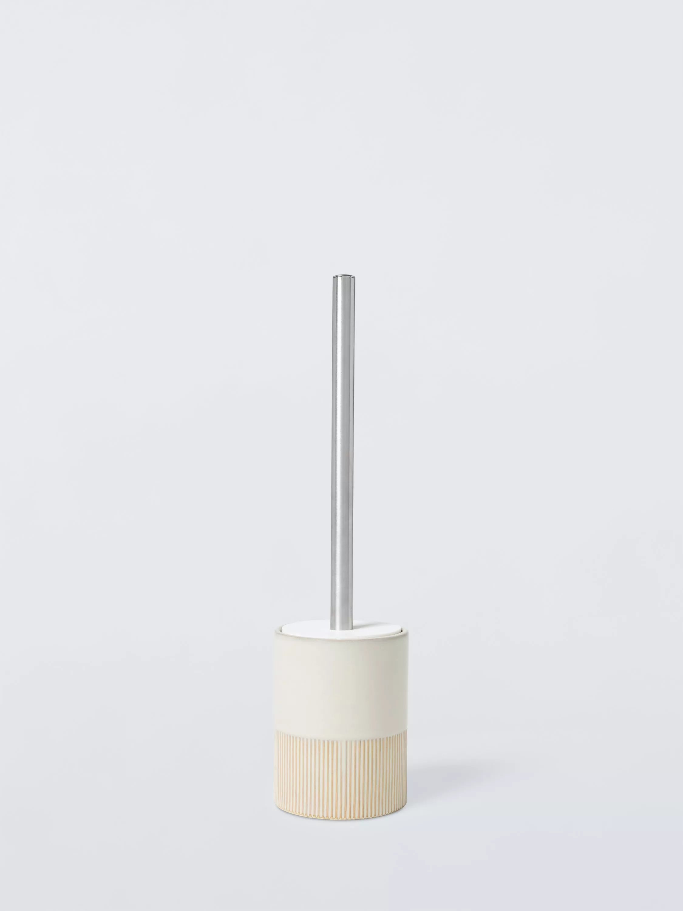 Elevate even the most mundane bathroom cleaning task with this two tone, reactive glaze toilet brush and holder.