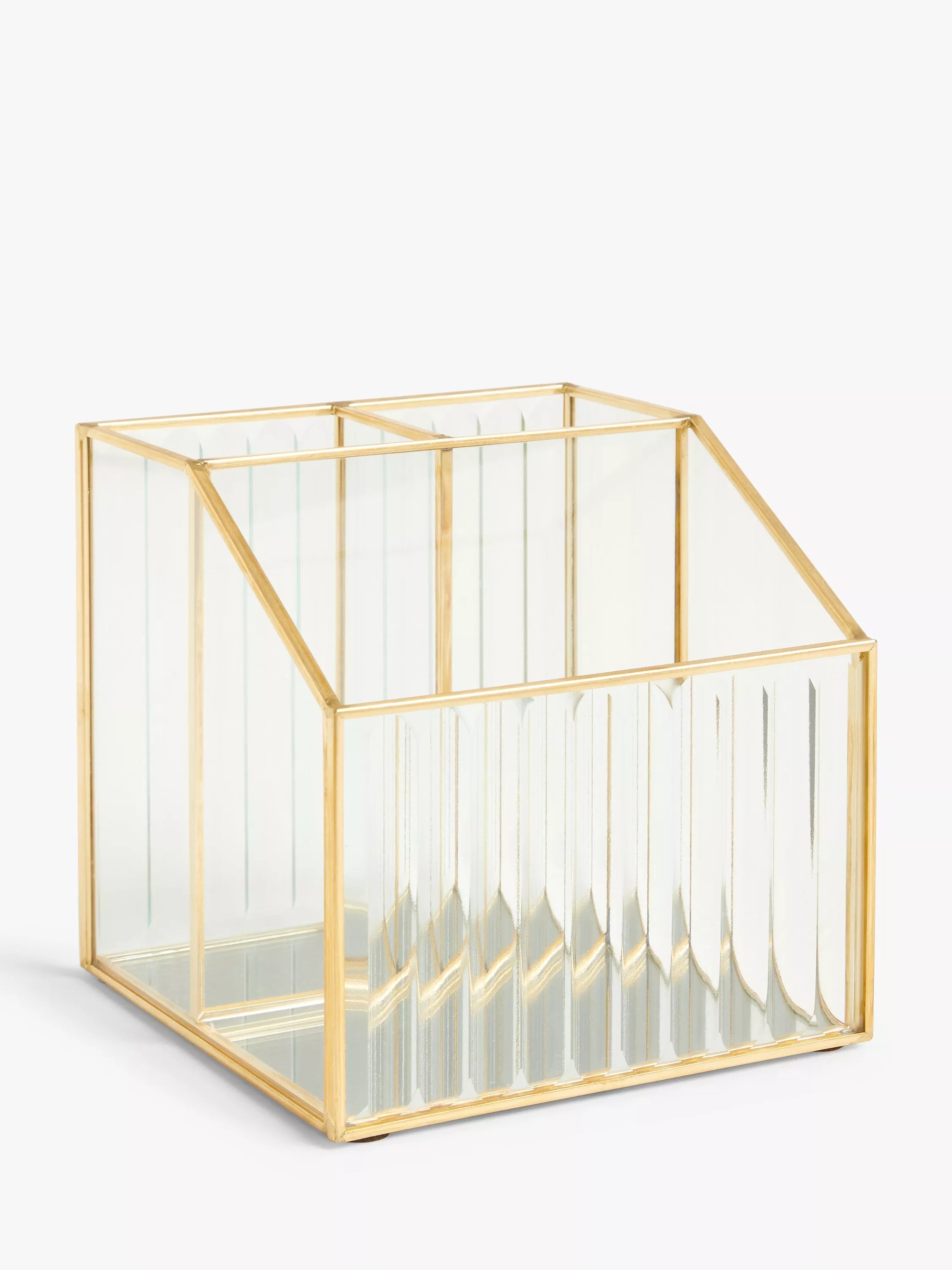 In a modern, glass design with beautifully gold-toned accents, this organiser is ideal for keeping your make up and brushes organised.