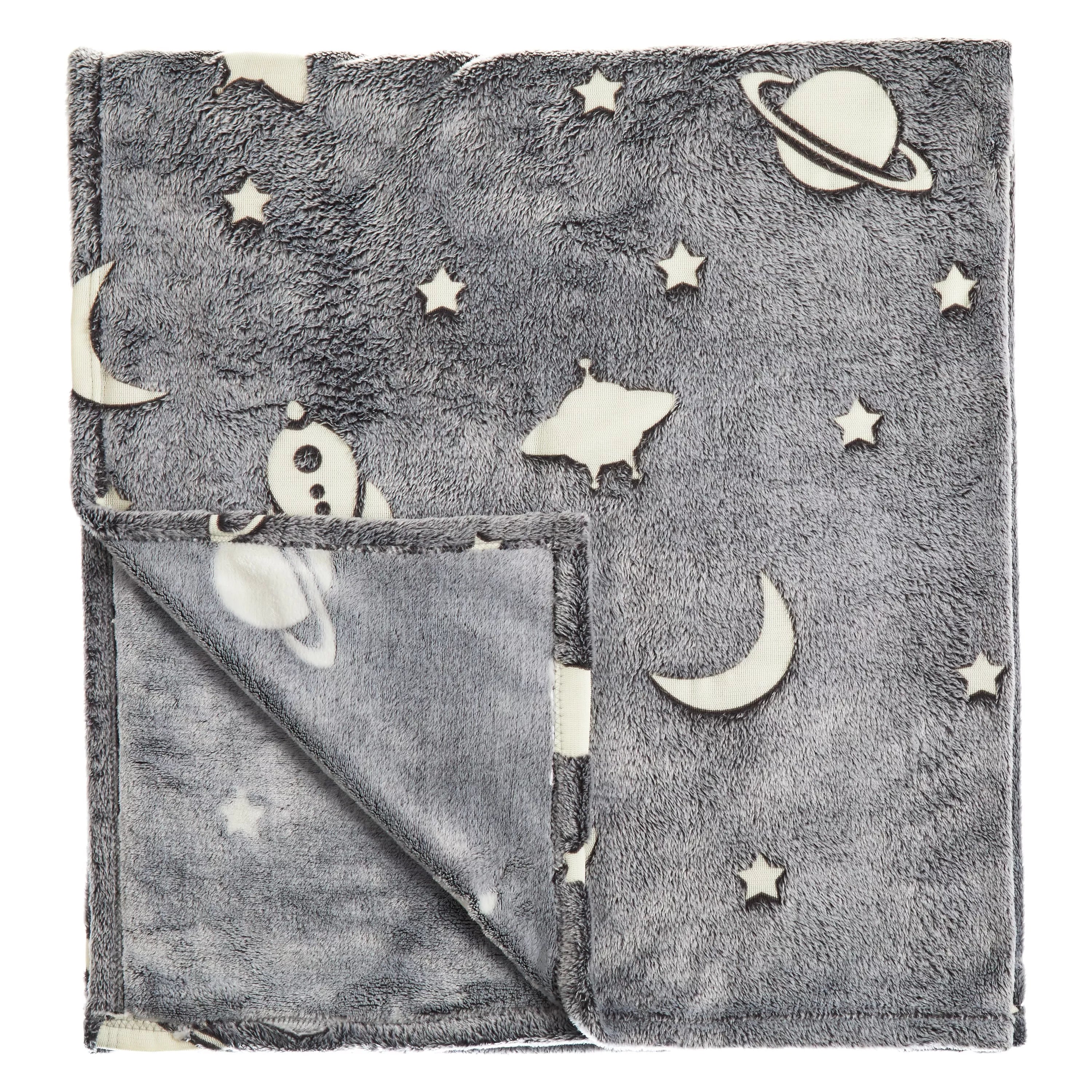 Snuggle up with this magical space-themed fleece throw, perfect for children and adults alike. Its super-soft texture and enchanting glow-in-the-dark design create a comforting and imaginative bedtime experience.