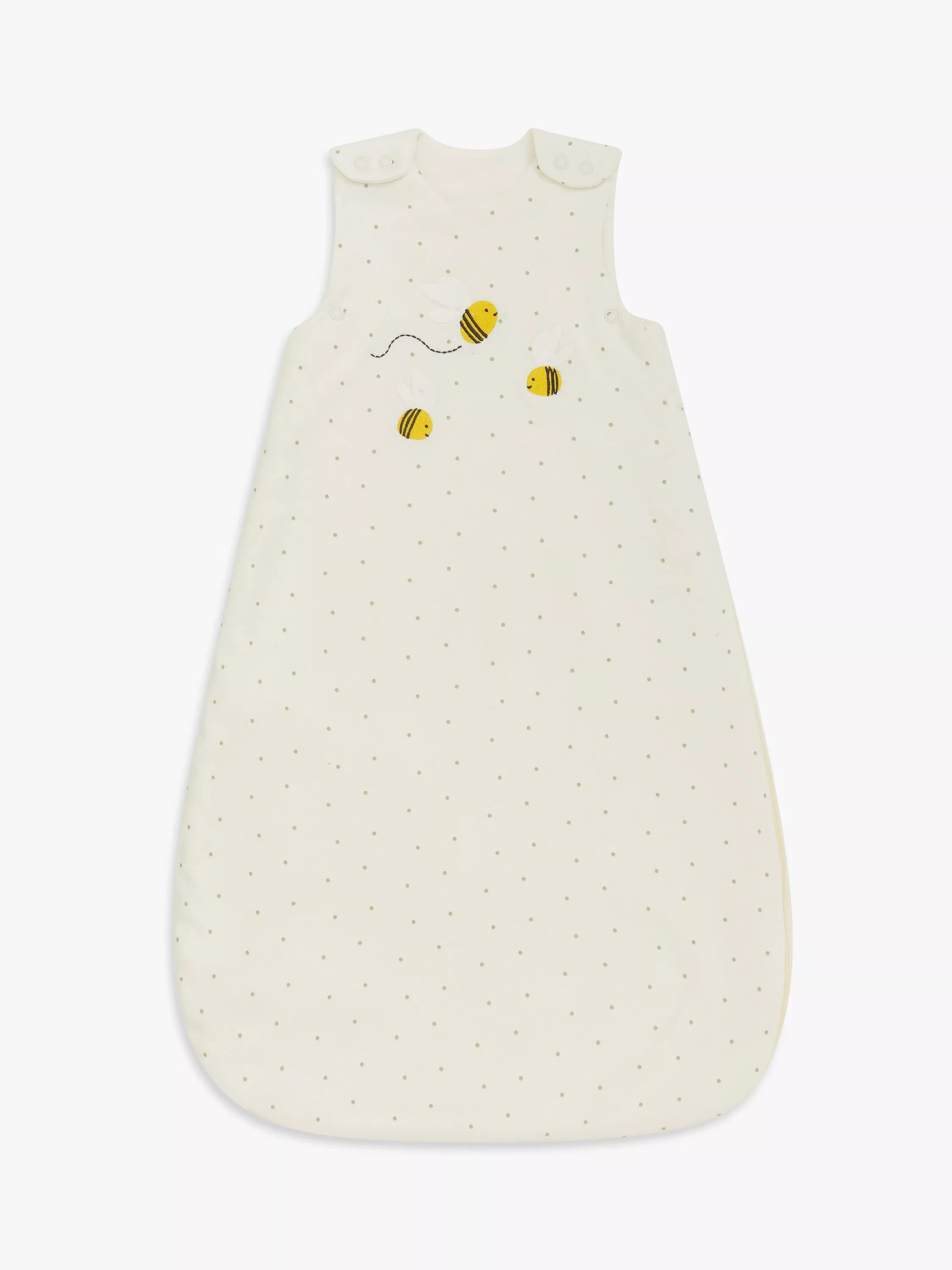 Sweet dreams are made of this! The John Lewis Spotty Bee Baby Sleeping Bag offers a safe and snug sleep solution for your little one. Made with breathable cotton, this adorable sleeping bag is a stylish and practical addition to any nursery, perfect for parents seeking quality and safety.