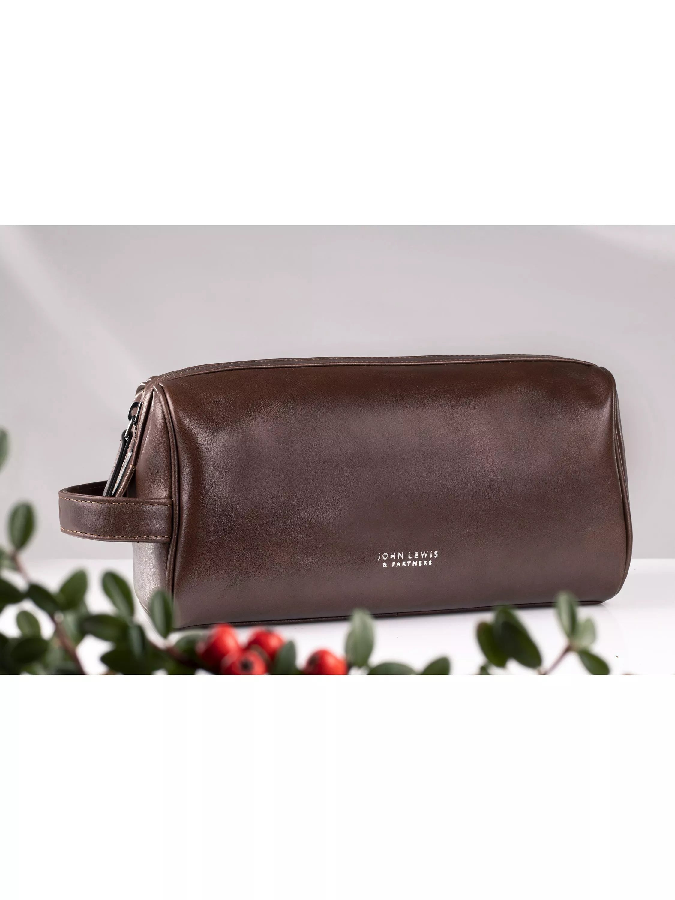 Luxuriously crafted from premium vegetable-tanned leather, this John Lewis & Partners wash bag is a sophisticated option for transporting grooming essentials.