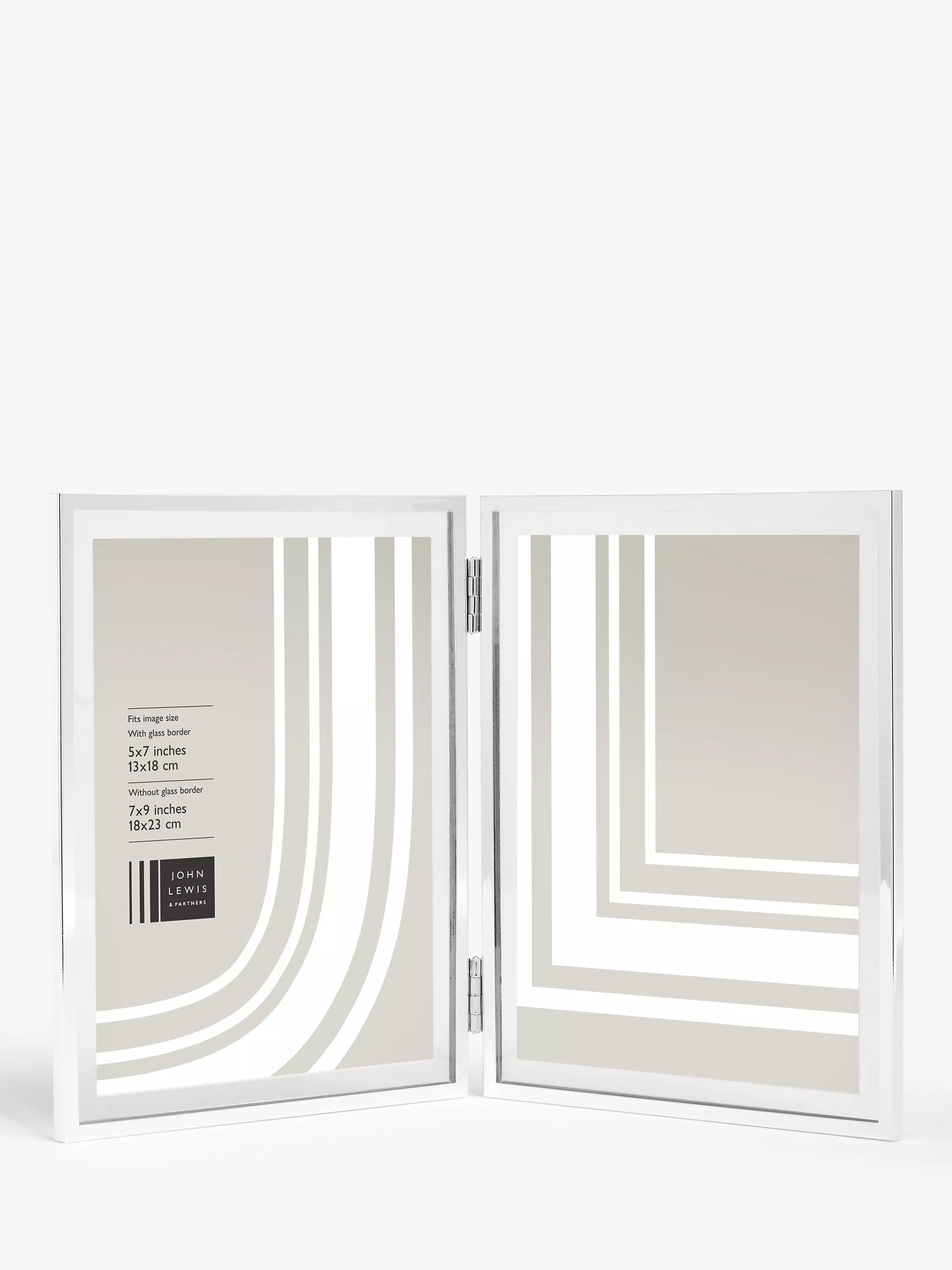 Ideal for photos you want to display together, this freestanding double photo frame is a hinged design with a silver-plated finish.