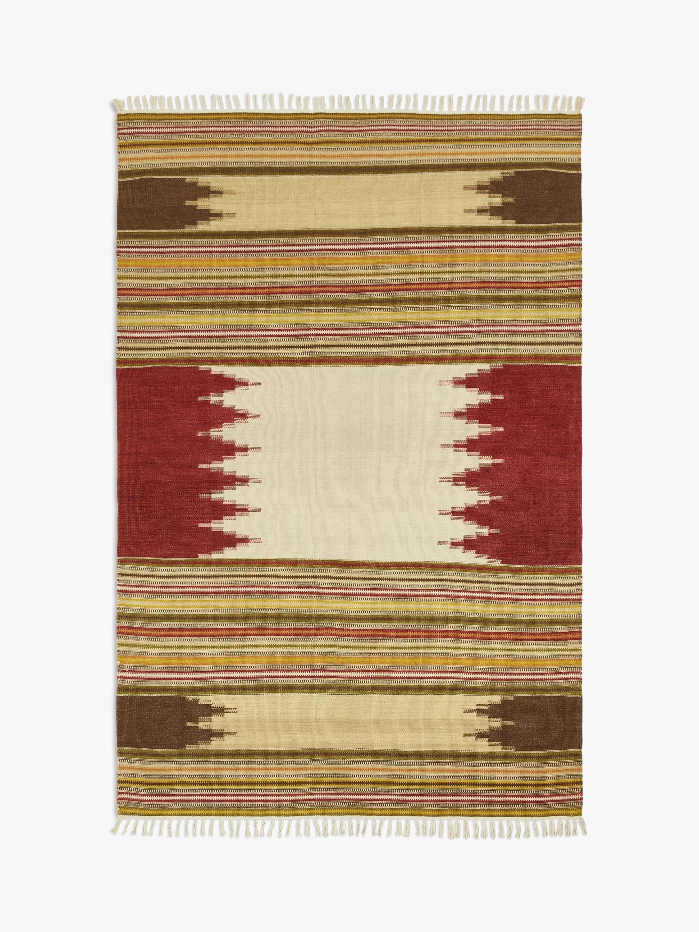 Taking inspiration from traditional design, the Vilay Souk Kelim rug offers a geometric addition to your home. Made from a wool-rich mix for durability, the tassels at the top and bottom complement the ancient look and feel.