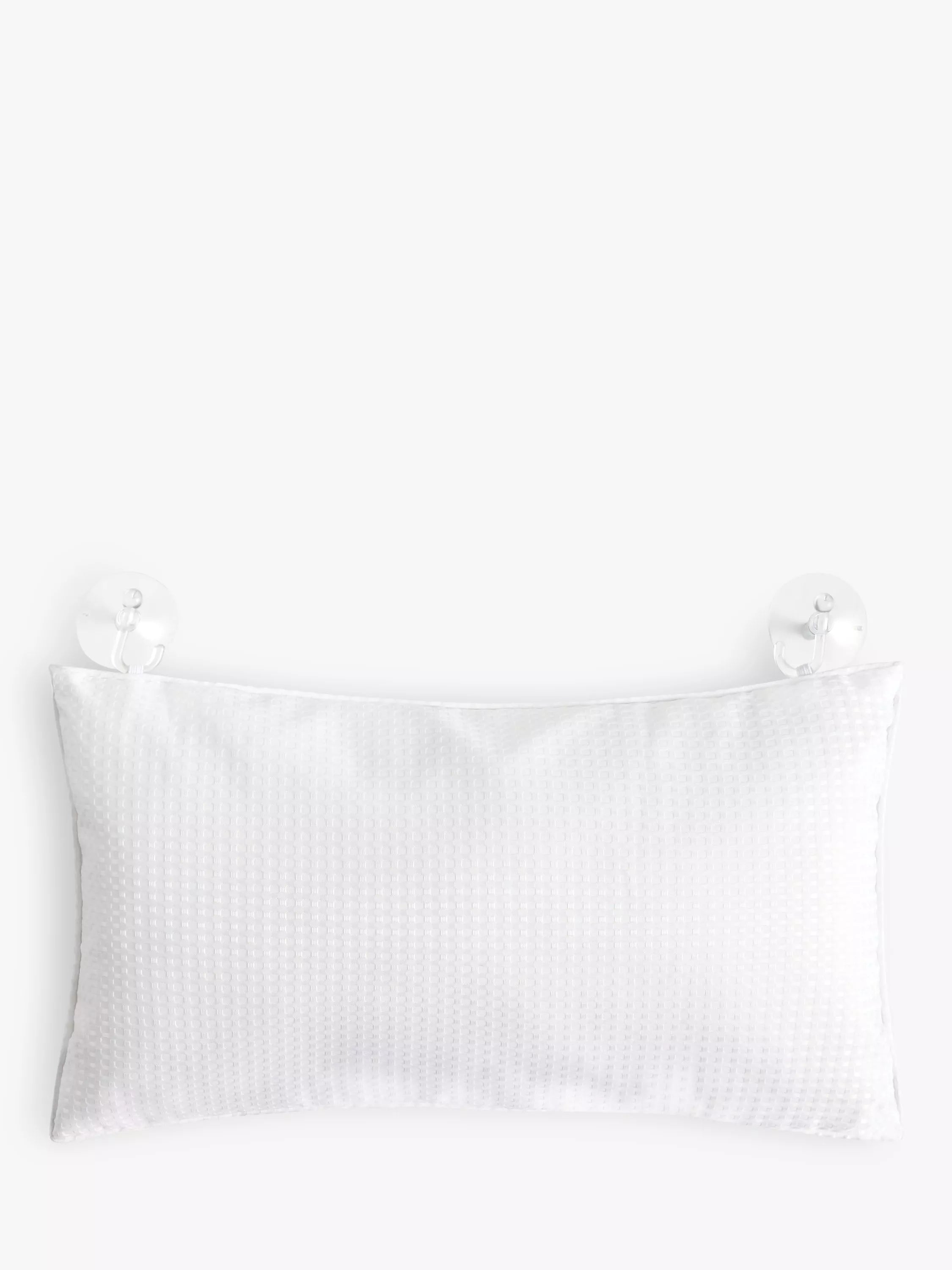This plush waffle bath pillow lets you relax completely while you soak in the tub. It fastens onto the back of the bath with suction pads and removes easily once you're done.