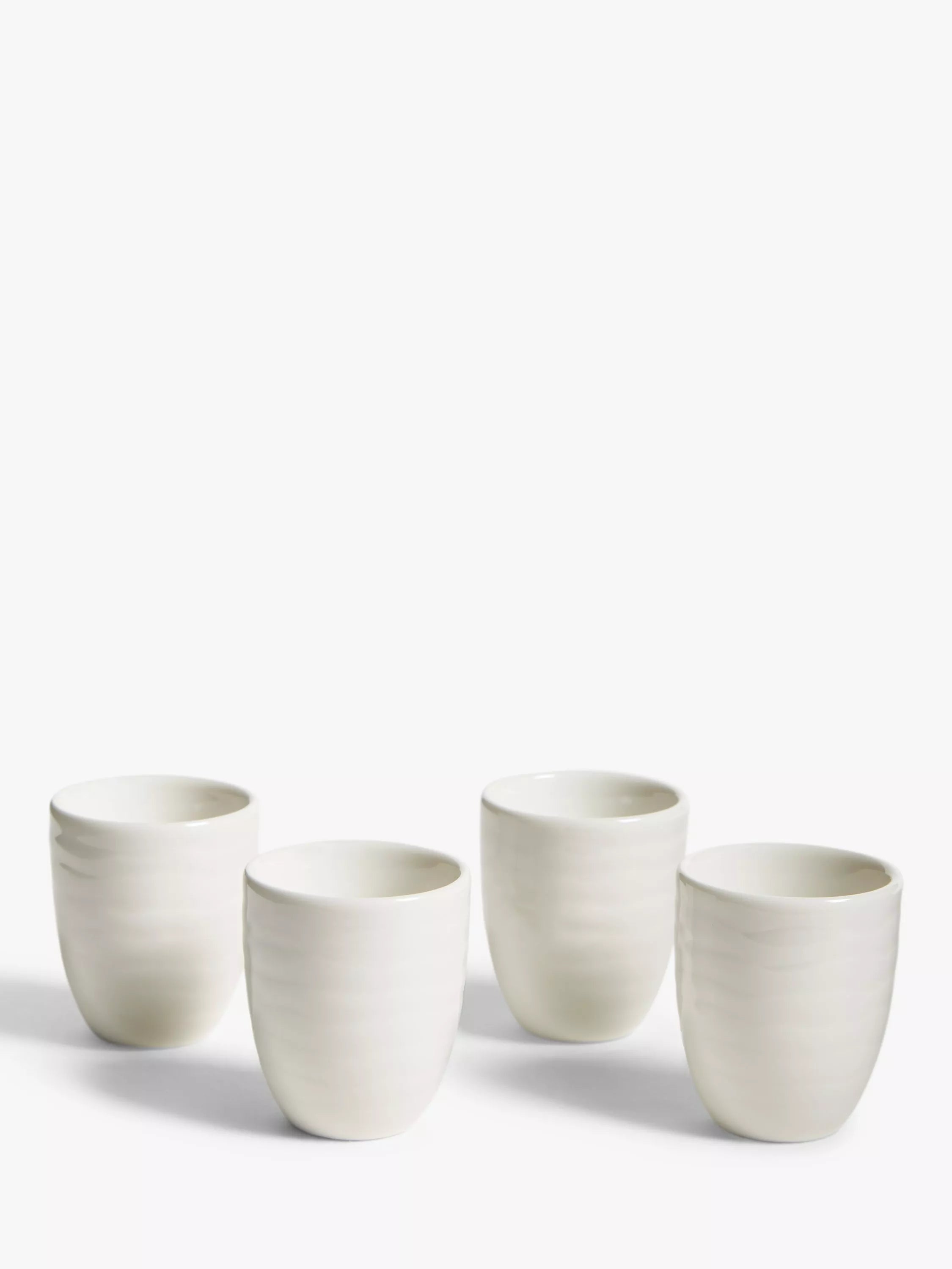 Wave tableware is made of fine china with a pattern from our in-house Design Studio, inspired by ripples left on the sand by waves. This set of four Wave egg cups are dishwasher and microwave safe for everyday use.