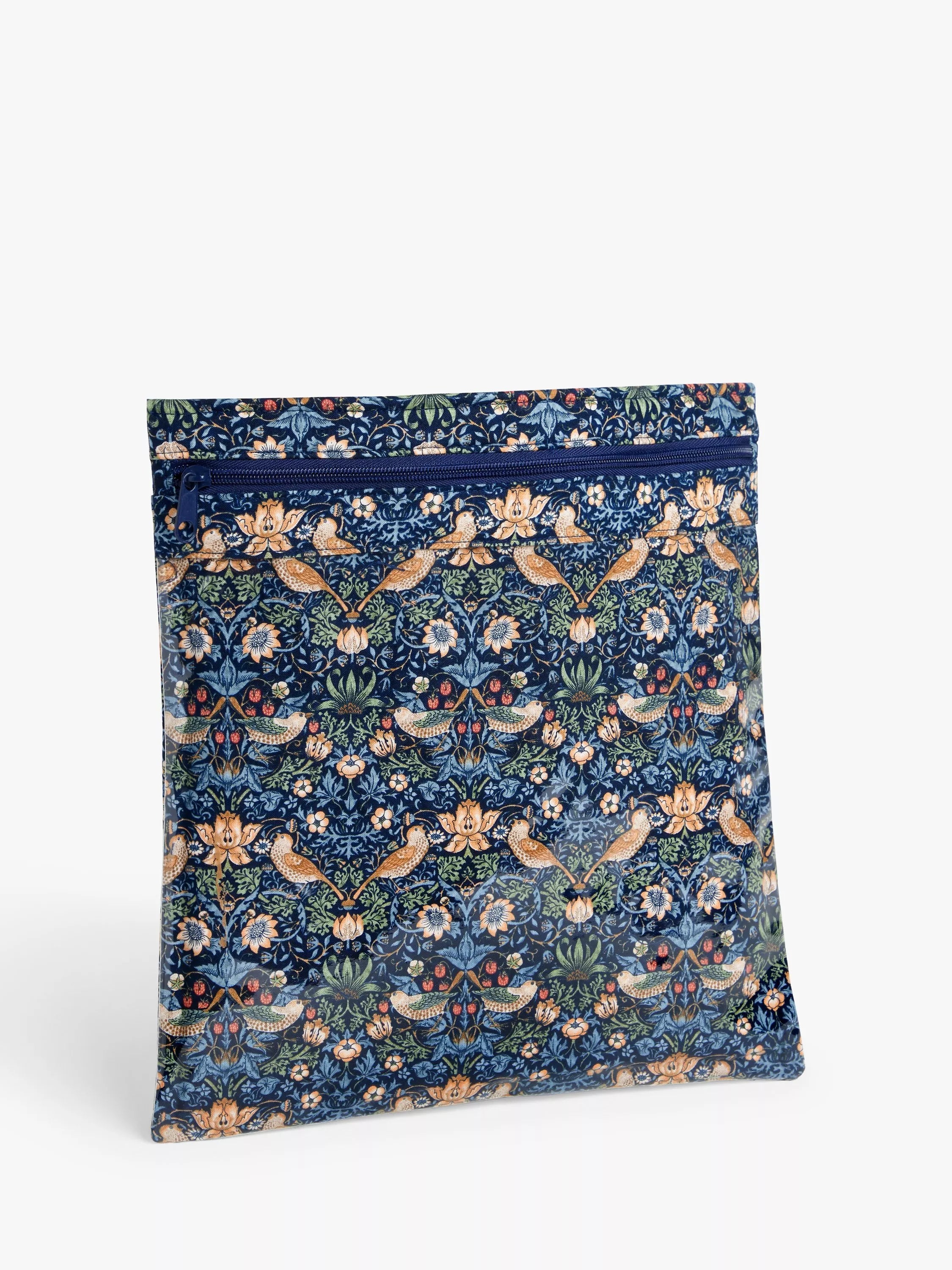 It has a see-through side and a large hidden pocket at the back and comfortably fits a large needlecraft hoop and a large selection of embroidery threads, scissors, and guide booklets.