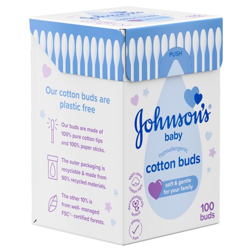 Read More- Hypoallergenic - Soft & gentle for your whole family - 100% pure cotton tips - Dermatologically tested - Plastic free JOHNSON'S® Baby Cotton Buds are soft and gentle enough for the whole family, perfect to use on delicate skin. Gently cleans and dries between baby's fingers, toes and around the eyes, nose, or outer ear. JOHNSON'S® Baby Cotton Buds can also be used to apply cream to blemishes. These cotton buds are completely plastic free, with 100% pure cotton tips and paper sticks.