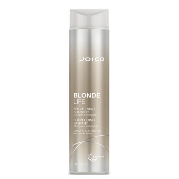 Joico Blonde Life Brightening Shampoo gently cleanses and enhances blonde tones by removing buildup and brassiness. Infused with Monoi and Tamanu oils, it hydrates, strengthens, and adds radiant shine