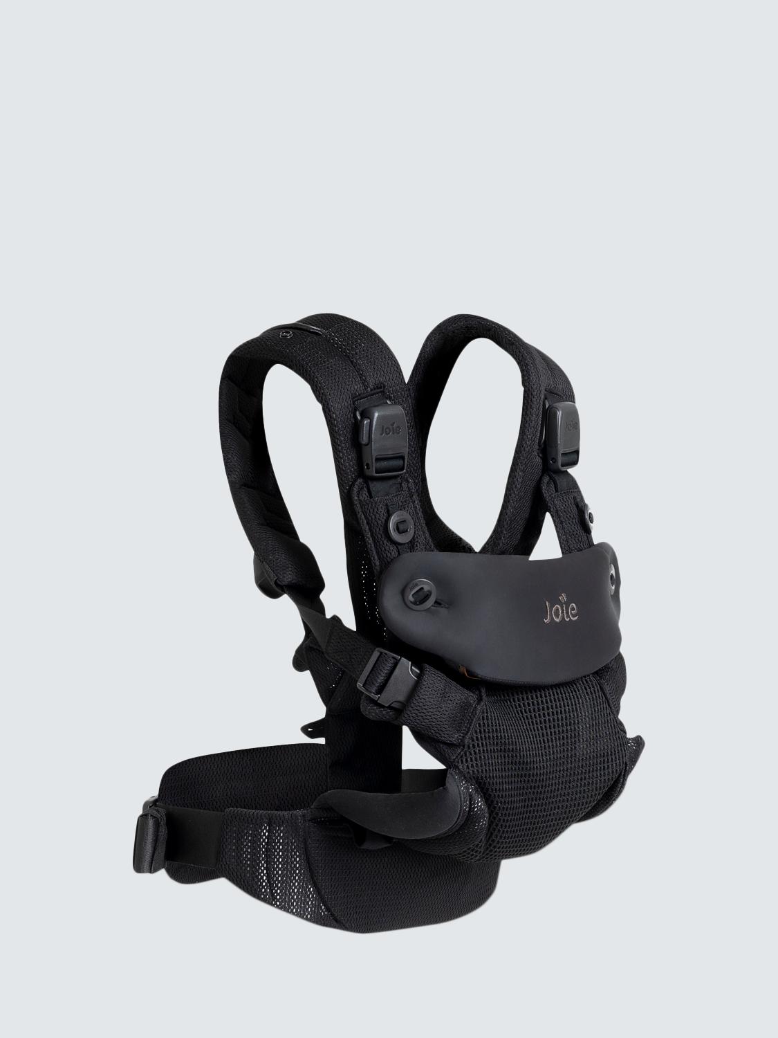 Joie Baby presents the Savvy Air 4-in-1 Baby Carrier in Coal, designed for superior parental comfort. This carrier features highly breathable mesh fabrics and supports babies from birth up to sixteen kilograms. Its four carrying modes offer optimal ergonomic support for both parent and child.