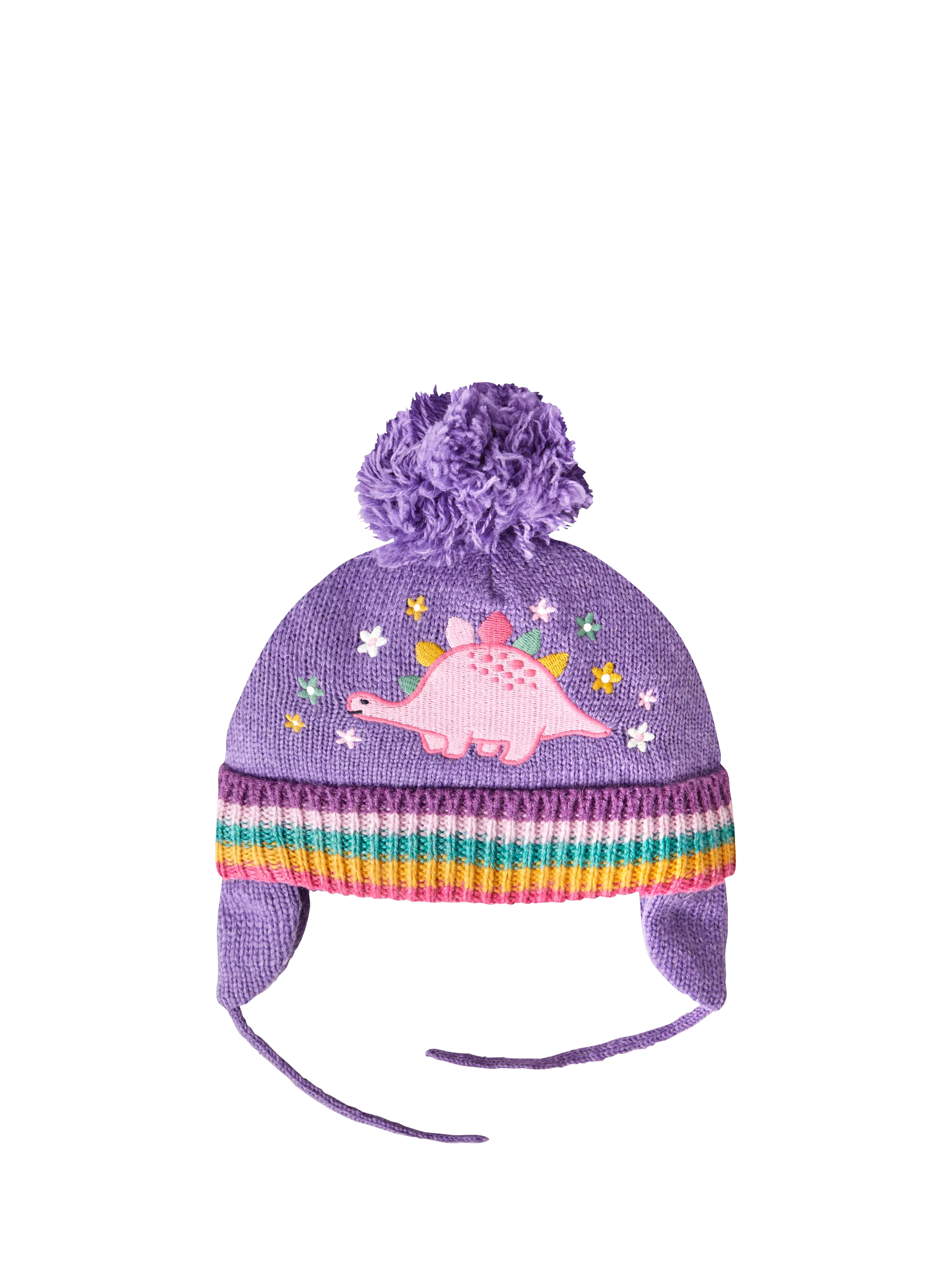 This dinosaur embroidered hat is specially shaped to keep the head, face and ears warm, making it perfect for keeping snug on chilly days. Ties to fasten under the chin ensure the hat stays on, while the soft lining offers extra cosiness.
