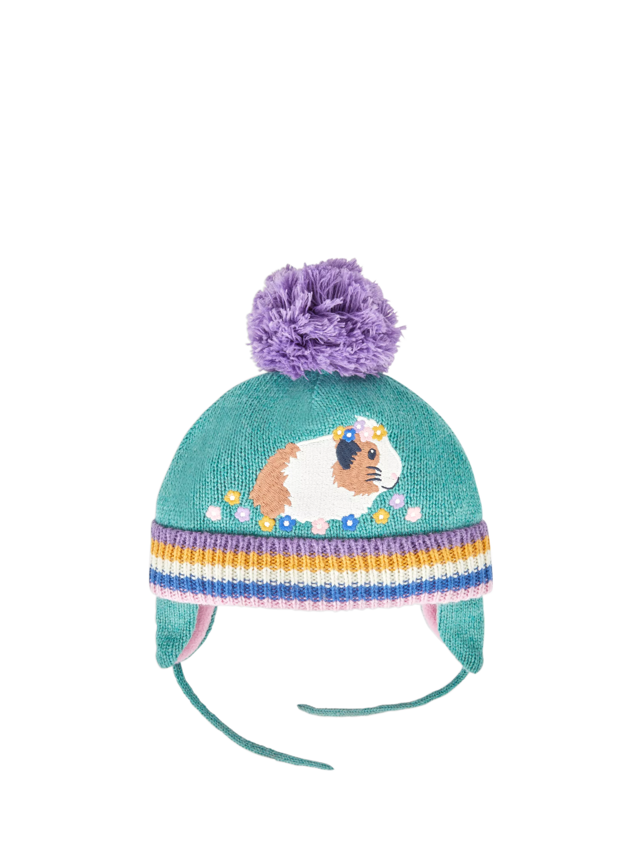 This Guinea Pig embroidered hat is specially shaped to keep the head, face and ears warm, making it perfect for keeping snug on chilly days. Ties to fasten under the chin ensure the hat stays on, while the fleece lining offers extra cosiness.
