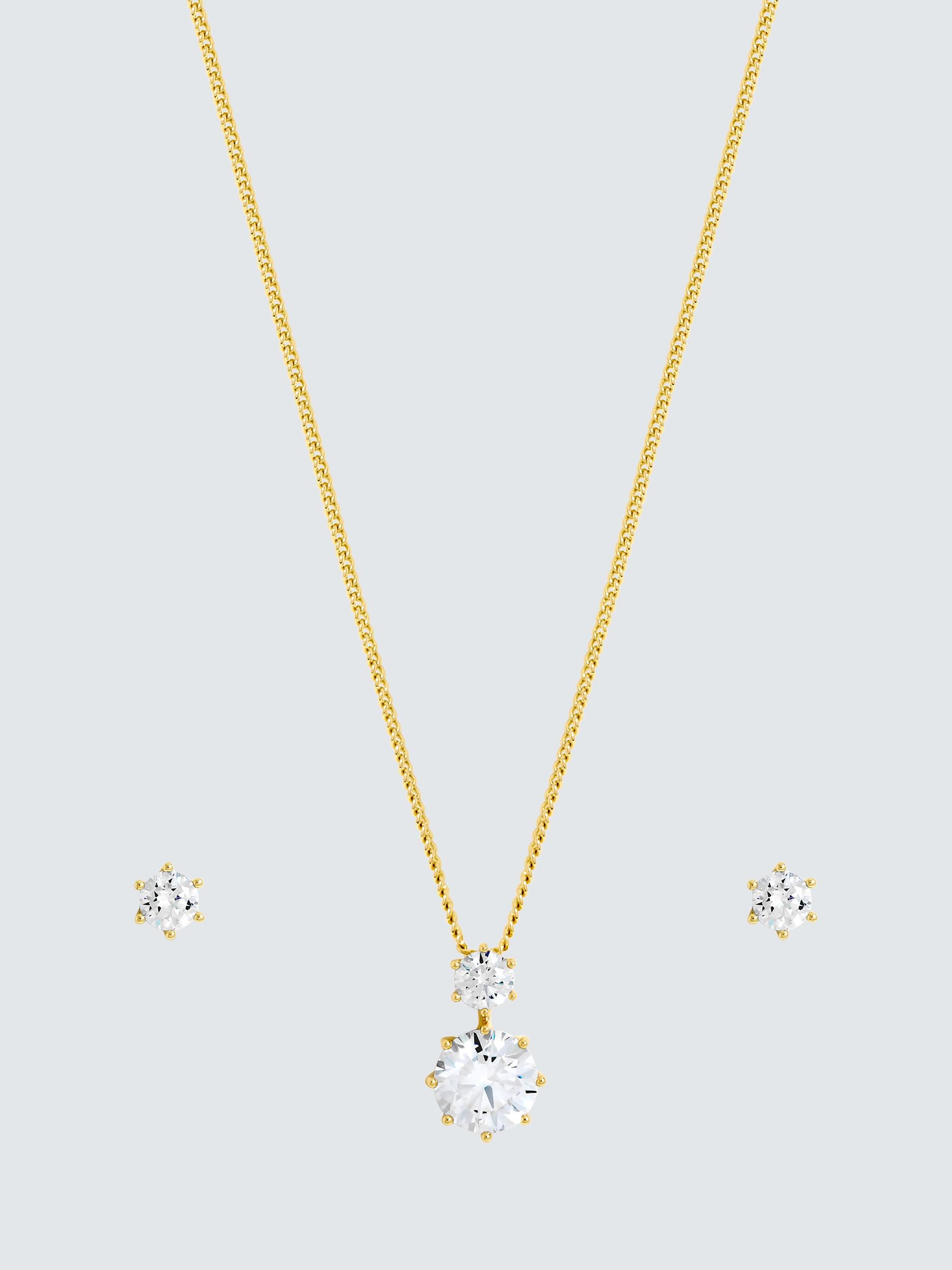 Showcasing a must-have classic design, this Gold Plated and Cubic Zirconia Round Drop Set is a mix of elegance and sparkle, designed to catch the light from every angle. Perfect gift for weddings. The earrings are suitable for pierced ears only.