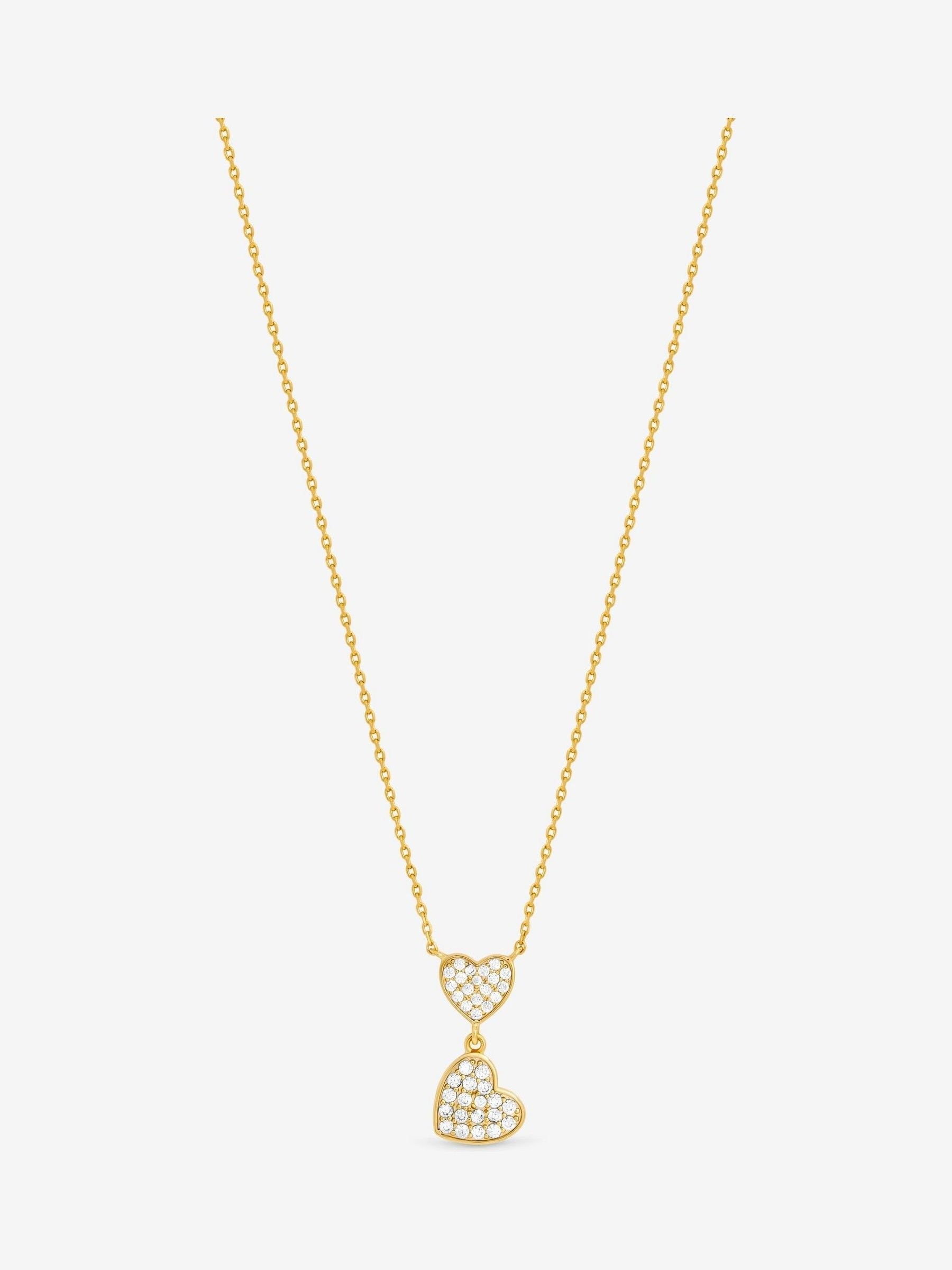 Our 18k Gold Plated Micro Pave and Heart Necklace is crafted with care, this delicate piece features a timeless heart design, symbolizing adoration, and love. With sparkling pave crystals and finished in radiant 18k gold plating. It’s the perfect addition to any Jewellery collection. Fastening: Lobster Clasp. Width dimension: 10mm. Length dimension: 23mm. Chain Length: 20'. Material: 18K Gold Plated Base Metal.