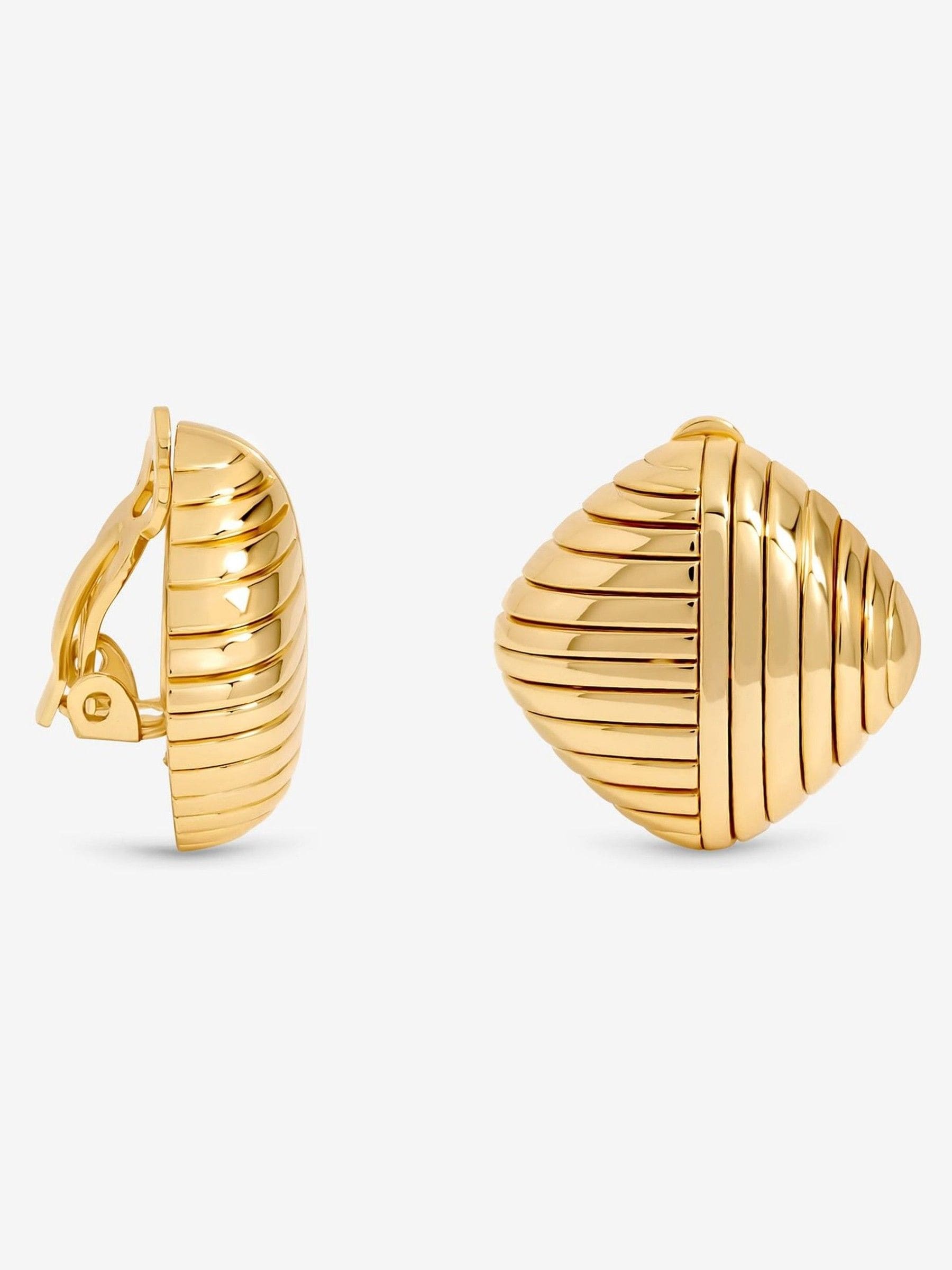 Add a touch of glamour with our Gold Plated Ridge Square Clip Earring, designed to shine effortlessly. Featuring a bold textured design and finished in polished gold plating, this elegant clip on style offers timeless sophistication without the need for pierced ears. The perfect piece to elevate any jewellery collection. Fastening: Clip On. Width dimension: 21mm. Length dimension: 21mm. Material: Gold Plated Base Metal
