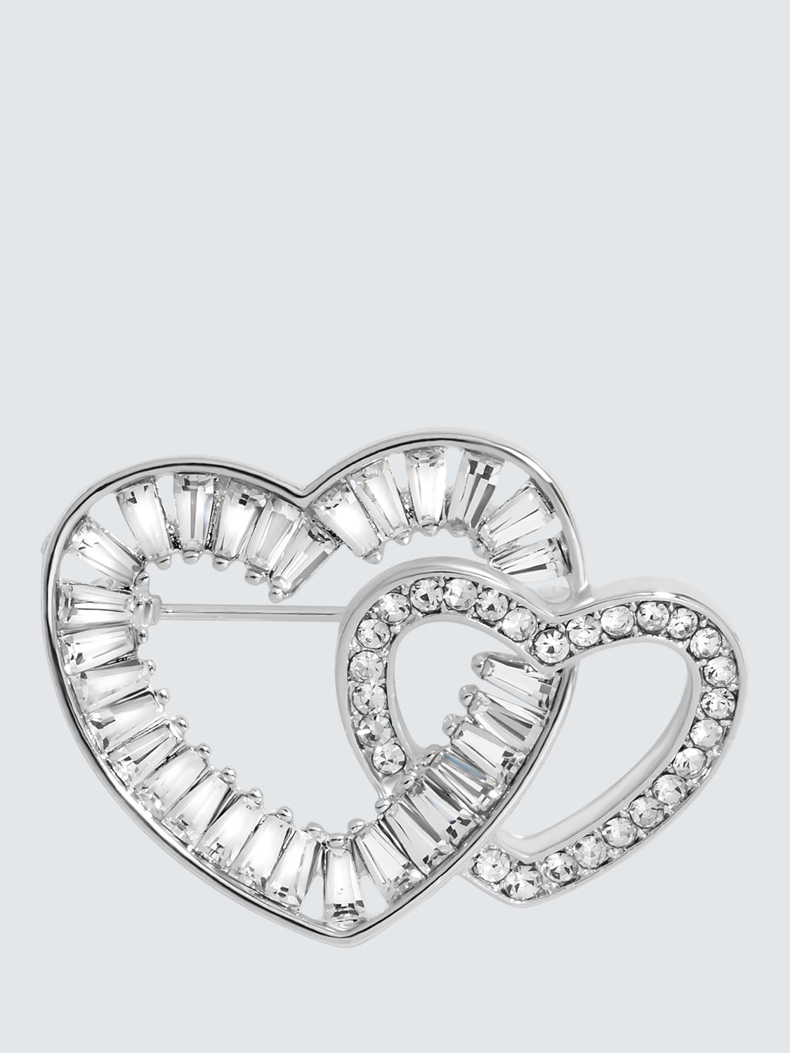 Jon Richard offers this elegant Interlinked Crystal Heart Brooch in a versatile silver-tone finish for refined accessorising. The design incorporates beautifully detailed, interlinked heart motifs set with sparkling crystals, creating a luxurious visual impact. This sophisticated piece enhances any formal or casual attire wonderfully.