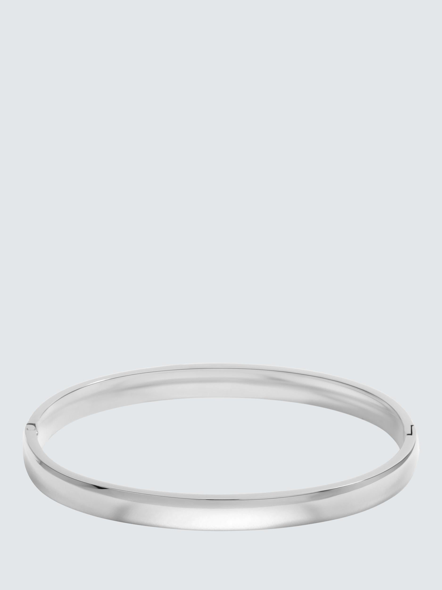 A staple piece with a timeless design. Crafted from stainless steel and finished in a sterling silver plating, this polished bangle brings a touch of glamour to your everyday look.