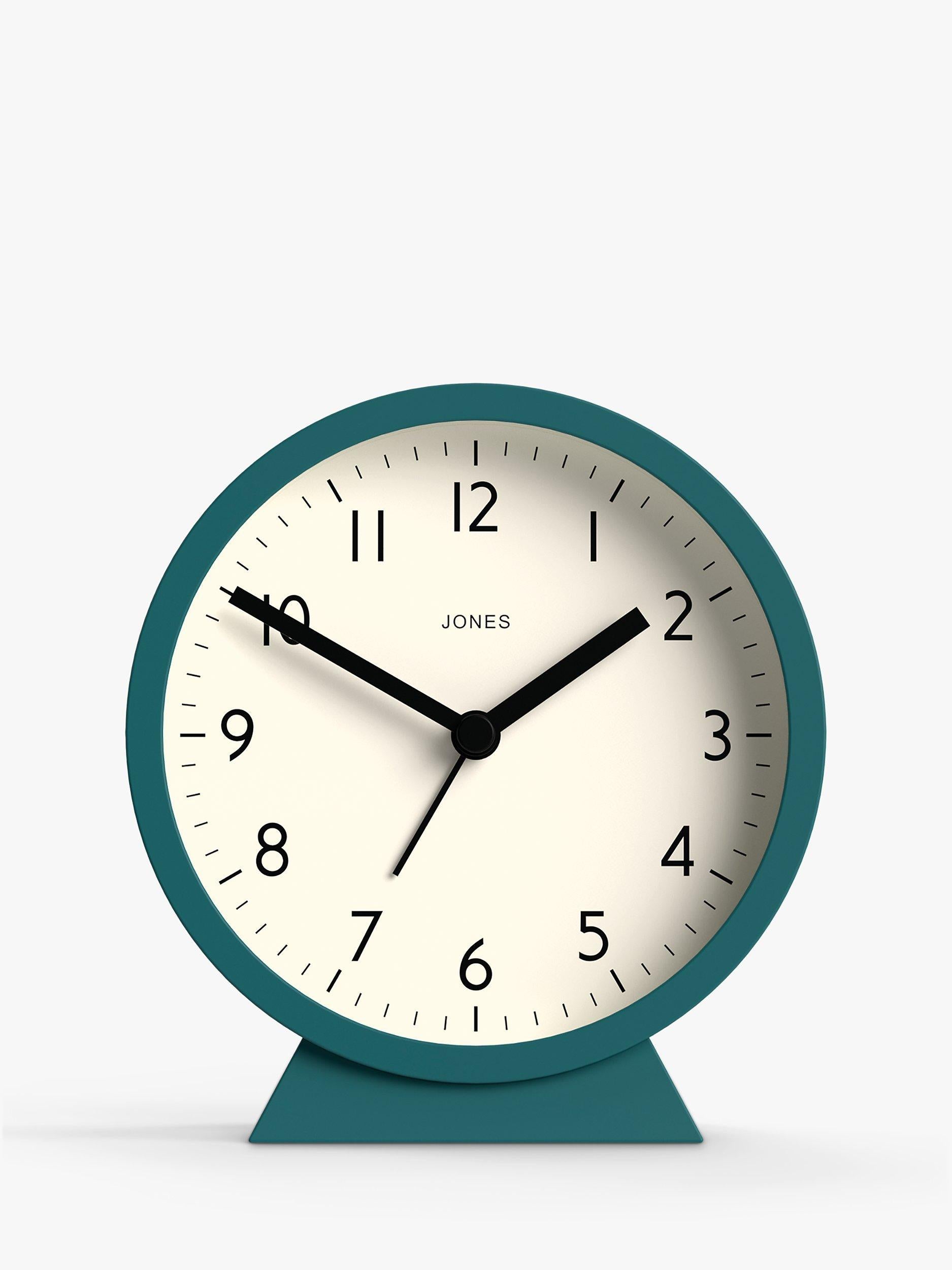 Jones Clocks Daybreak Quartz Analogue Alarm Clock presents a contemporary design featuring a decorative matt-finish case and clear Arabic numeral dial markings. This functional timepiece ensures energy-efficient timekeeping with excellent precision for your essential daily needs. It is an ideal, stylish accent for any shelf or desk surface.