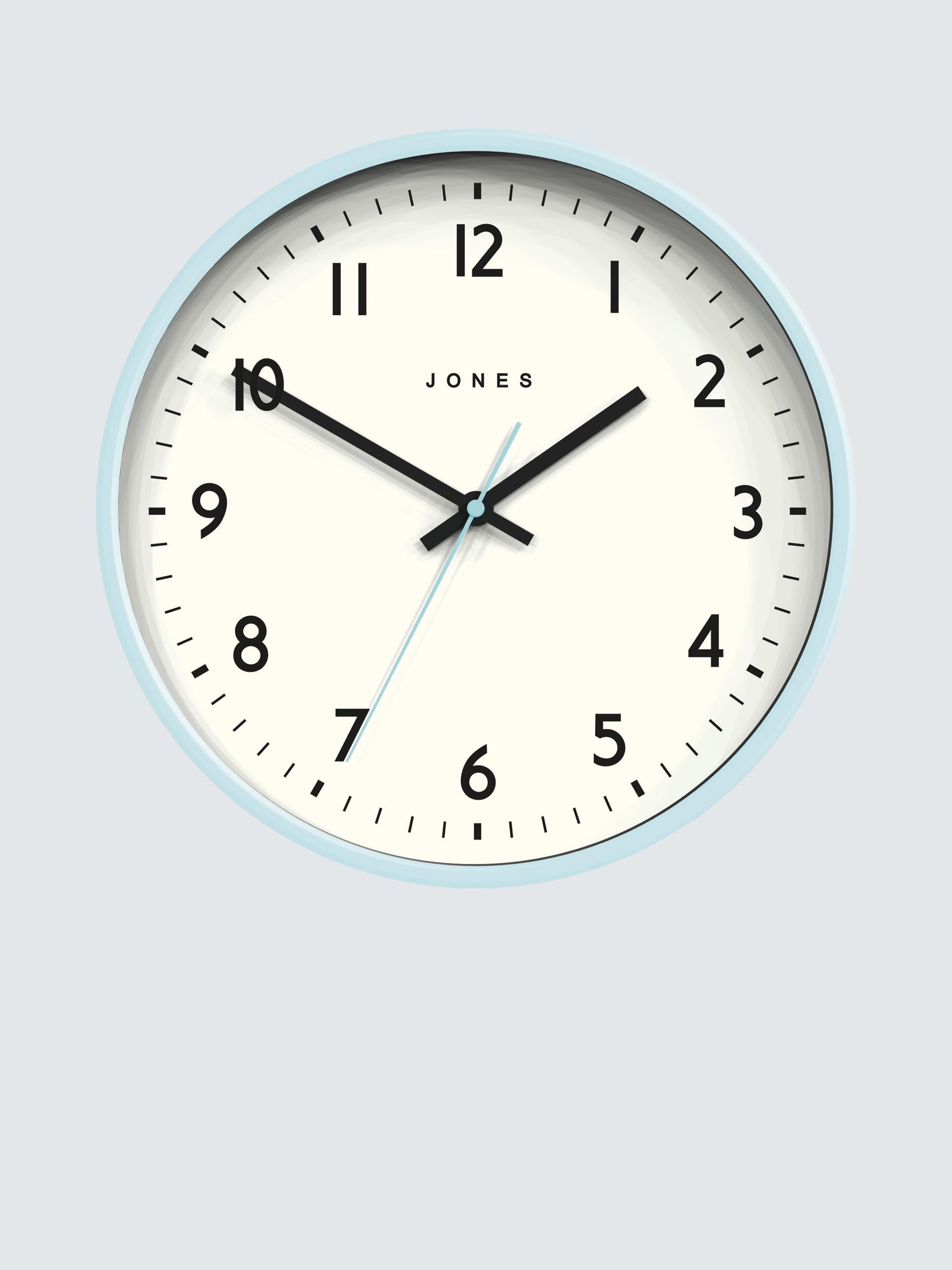5/5 A modern wall clock from the official Jones Clocks collection. A contemporary case and easy-to-read Arabic numeral dial are set behind a flat glass lens. This on-trend wall clock will hang happily in the kitchen or living room, adding the finishing touch to your decor.