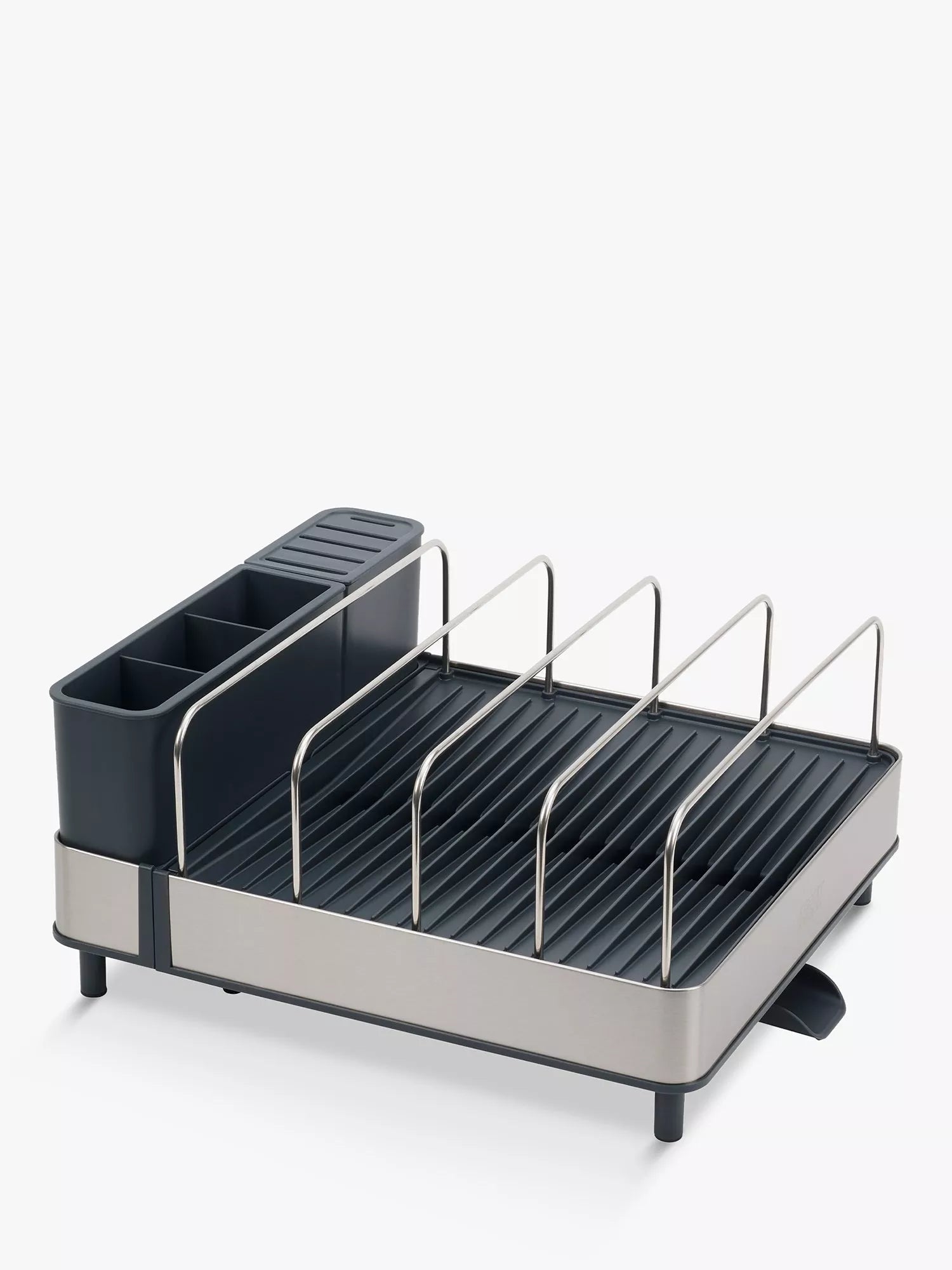 Perfect for draining large cookware items, baking trays and chopping boards, as well as plates, bowls and cutlery, it features raised ribs in its base to prevent water being trapped under glasses and a spout for draining directly into the sink. It's also easy to expand - even when full.