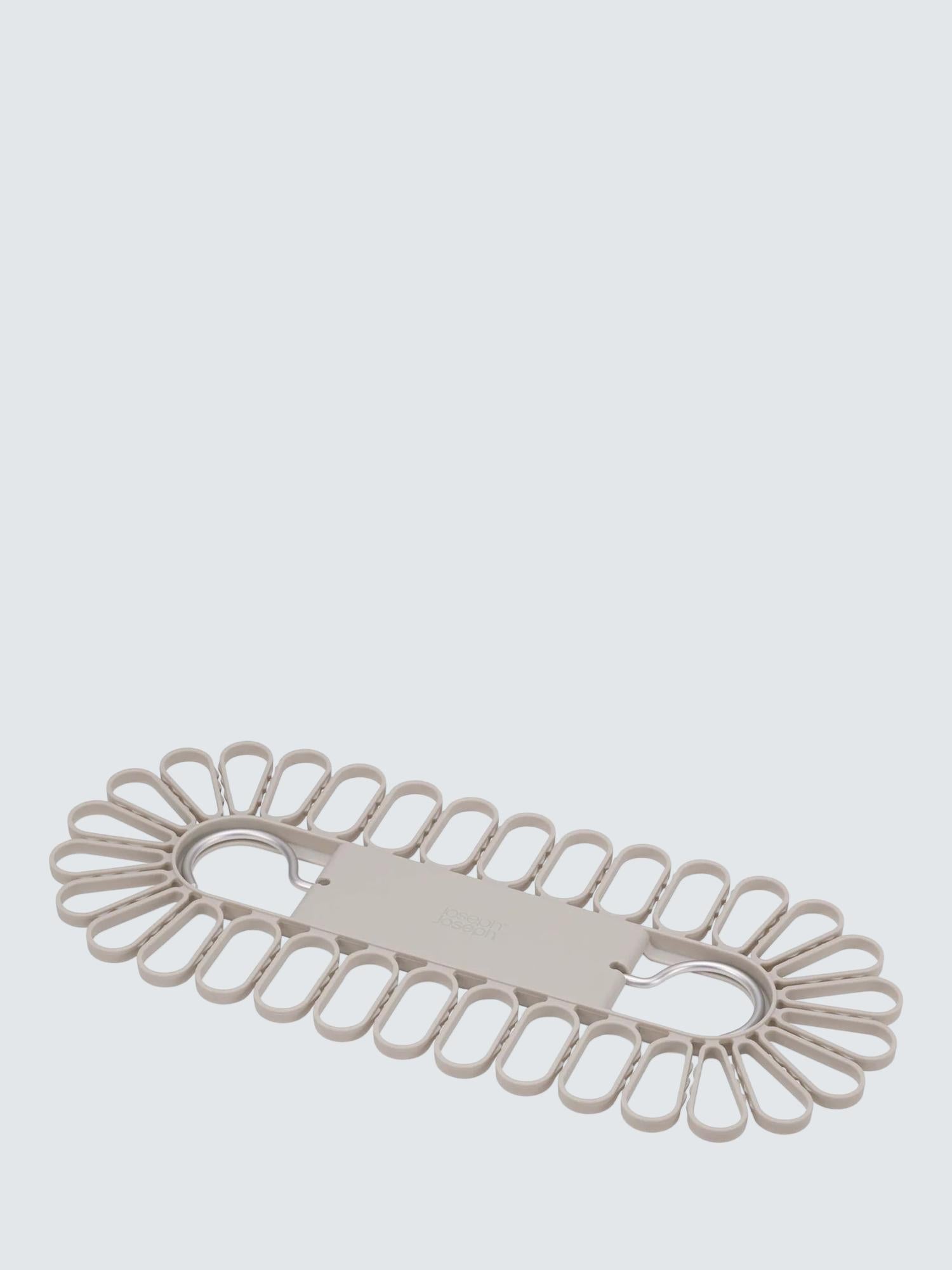 The Joseph Joseph Petal Hanging Laundry Organiser offers an efficient solution for drying numerous small garments simultaneously. This practical hanger securely grips up to 32 individual items using its intuitive push-grip loading system. Crafted with durable aluminium hooks, it folds completely flat for superior space conservation when not in use.
