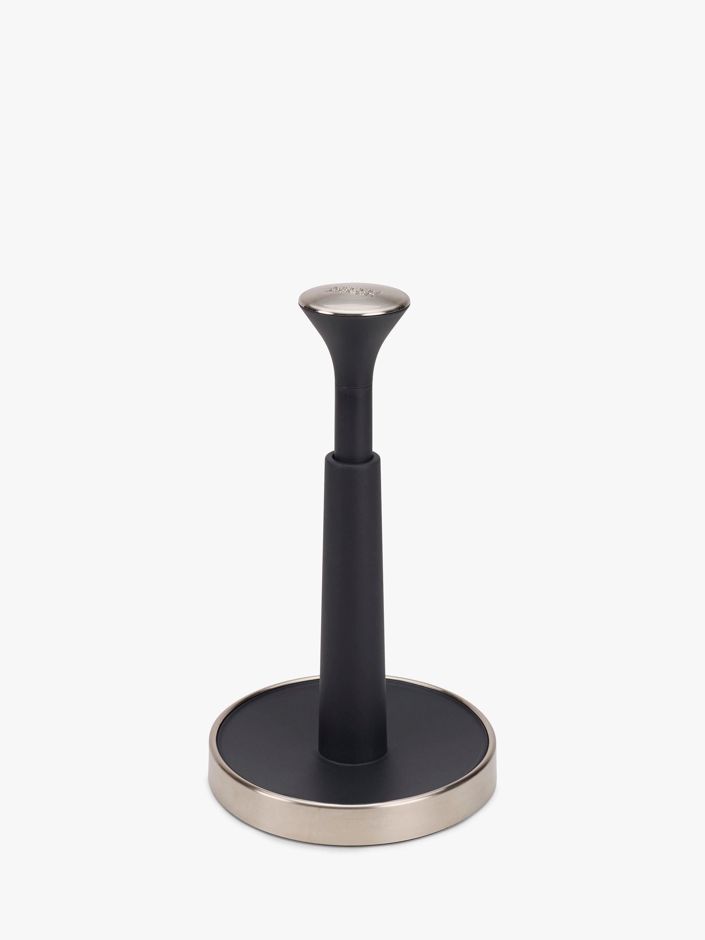 4/5 This Joseph Joseph kitchen roll holder is designed in a way to improve hygiene as you don't have to touch the roll, just push the lock with your wrist to hold the roll in place and tear a sheet off easily.