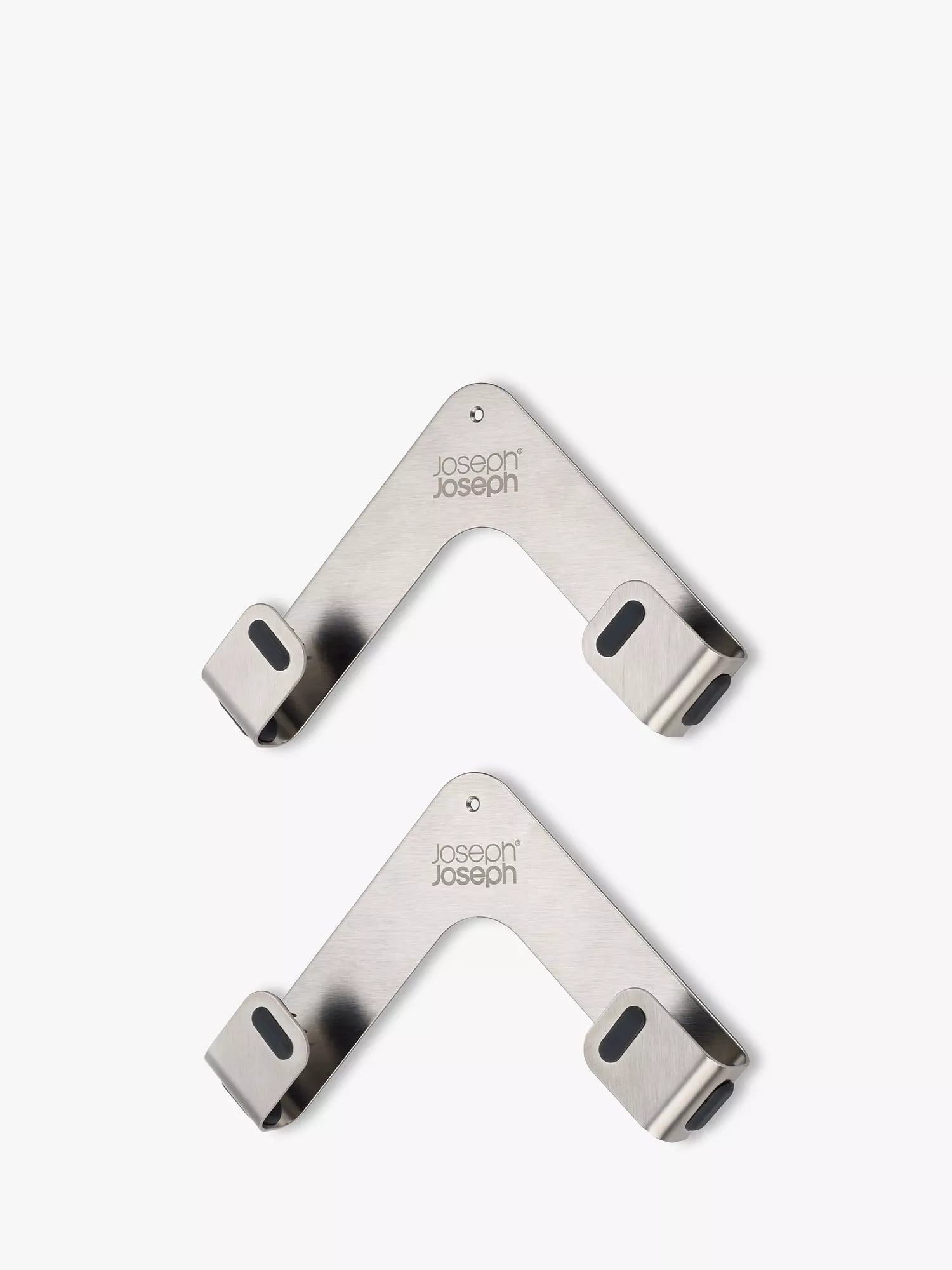 Stylish stainless holders to make storing awkward pan lids easy. Perfect for mounting inside cupboards or deep drawers, they feature non-scratch grips on the inside to hold lids securely. Easy to install using screws or the strong 3M VHB tape supplied, they're suitable for storing a wide variety of pan lids, including those for the Joseph Joseph Space cookware range.