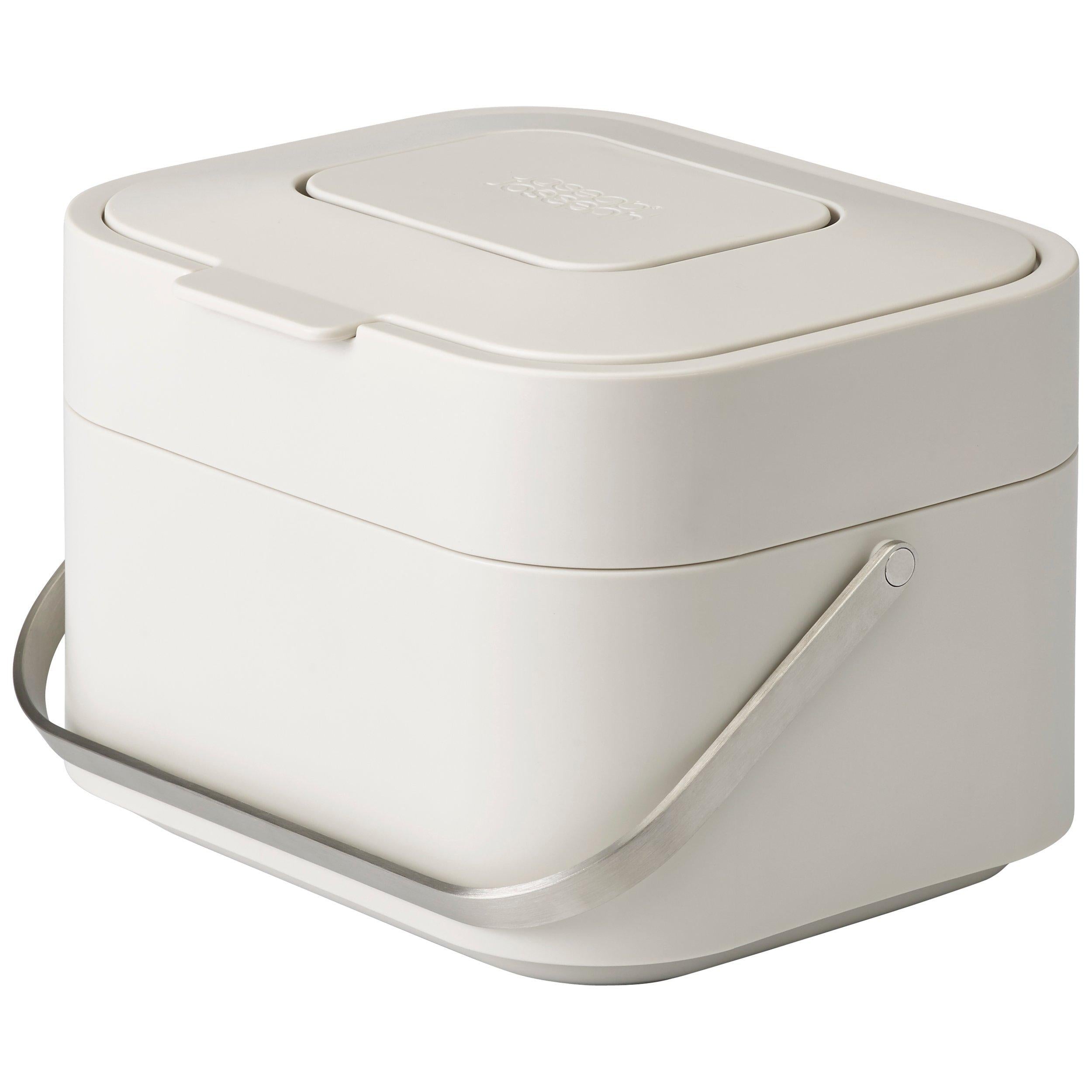 This Joseph Joseph Stack Food Waste Caddy, presented in a contemporary Stone finish, offers four litres of capacity for kitchen scraps. Its unique, ventilated structure promotes necessary air circulation inside the container, significantly reducing moisture levels often linked to unpleasant food decomposition odours. This efficient design keeps your kitchen fresh.