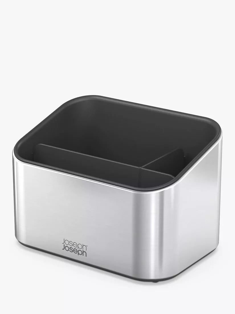 With it's tough, stainless-steel body and fingerprint-proof coating, this smart sink tidy will bring a touch of class to your sink-side for many years to come. It features multiple compartments to hold a washing-up liquid bottle, brushes and sponges, an angled design for easier access and non-slip feet on the base.