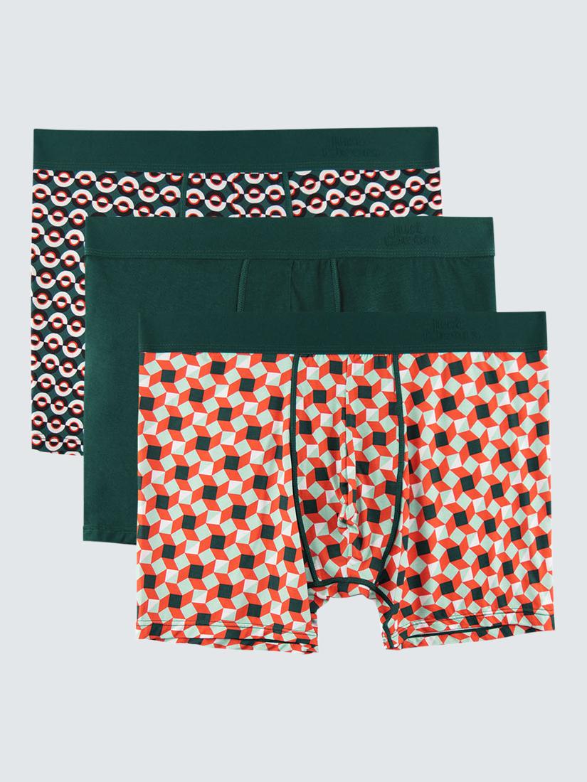 Discover the JustWears Pro Boxers, a practical pack of three featuring unique Graphic Geos designs. These boxers utilise the softest organic MicroModal Air, offering a feel softer than silk. The material is C02-neutral, bio-degradable, highly absorbent, and naturally keeps you cool.