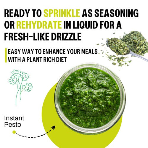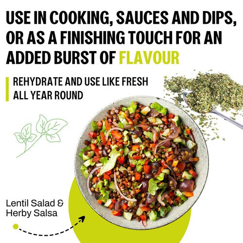 Sprinkle straight from the pot, add into cooking or rehydrate in liquid to enjoy like fresh. Great for soups, salads and sauces. No chopping neccesary!