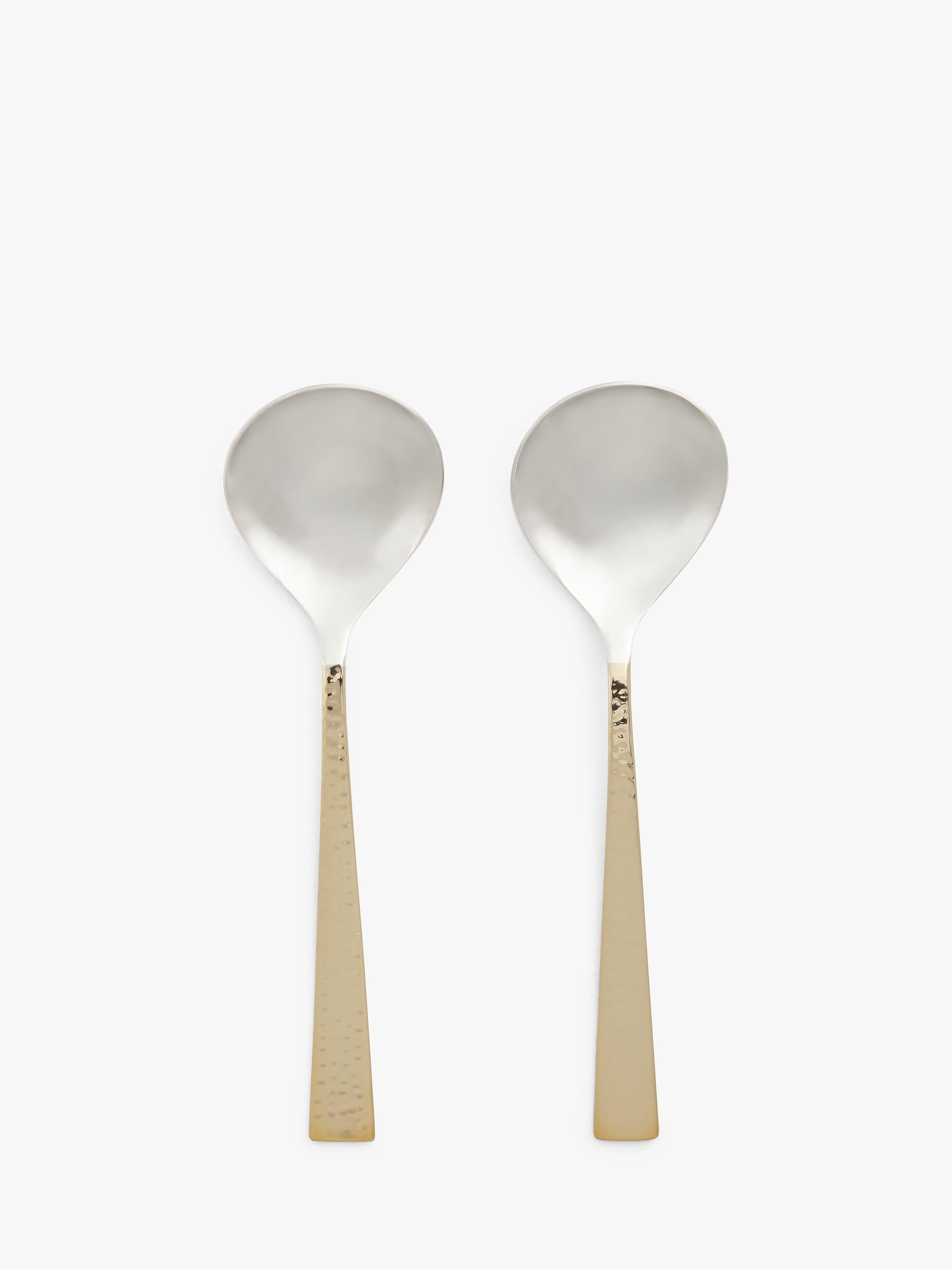 This Kainoosh Serving Spoons Set of 2 is crafted from durable stainless steel, ideal for your Tableware needs. Featuring refined gold-finish handles, these essential cutlery pieces handle serving tasks with ease every day. The pair coordinates perfectly with matching Kainoosh items, ensuring quality and style are always present when you dine.