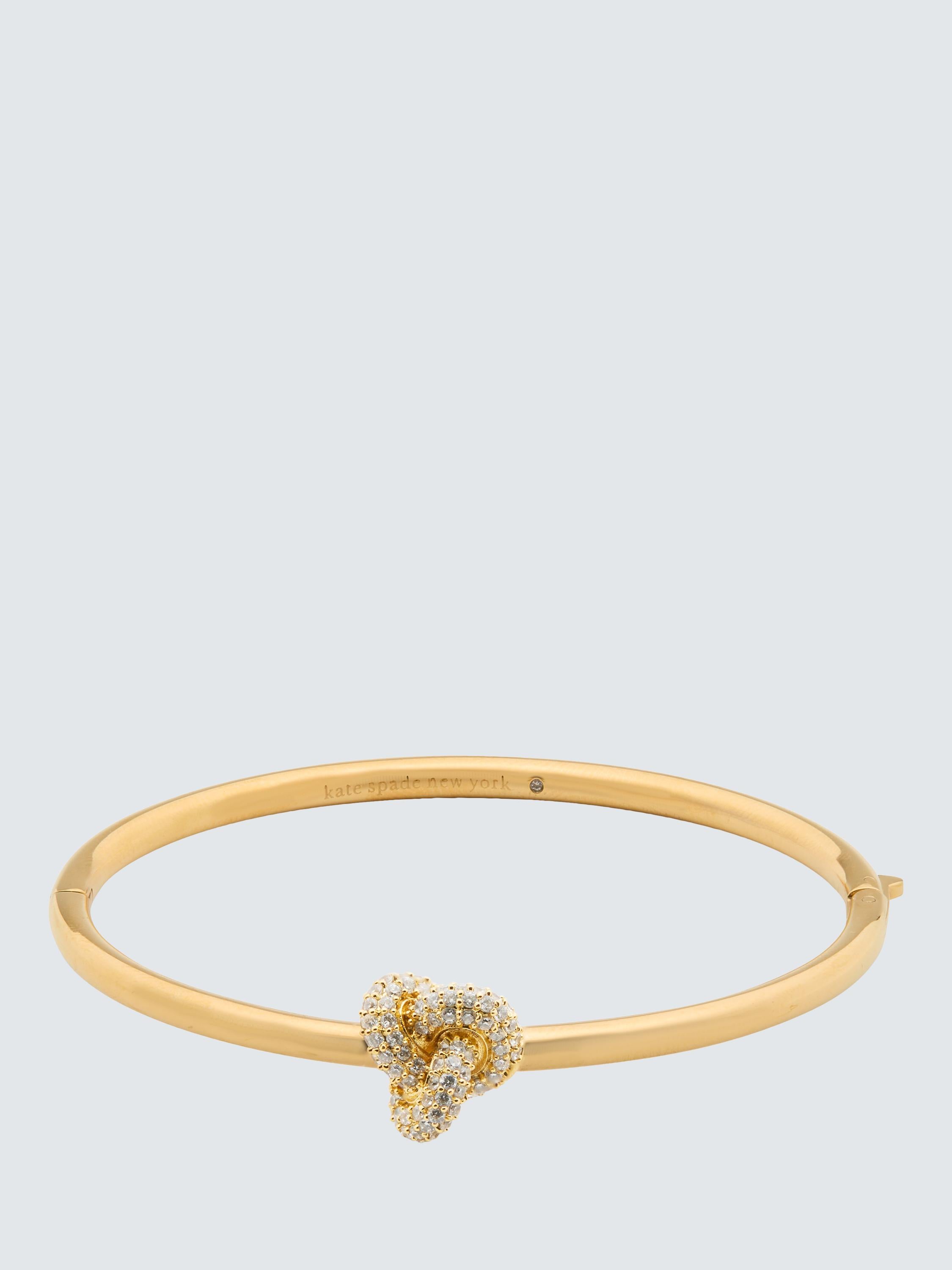 Tie your look together with this polished pave bangle from kate spade new york. Designed in a knot style, decorated with cubic zirconia. Fastens with a secure hinge.