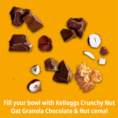 Features- Kellogg’s Crunchy Nut Hazelnut & Chocolate breakfast granola – The trouble is they taste too good!. - Kellogg’s Crunchy Nut Hazelnut & Chocolate breakfast granola is made with wholegrain.. - Kellogg’s Crunchy Nut Hazelnut & Chocolate breakfast granola is made with crunchy oat clusters.. - Kellogg’s Crunchy Nut Hazelnut & Chocolate breakfast granola is made with no artificial colours or flavours..