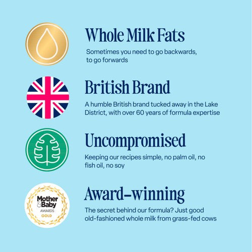 This Kendamil Follow-On Milk is lovingly crafted using over 60 years of expertise in infant nutrition. The formula transforms creamy whole milk into a quality product for your growing baby. Kendamil focuses on quality ingredients, avoiding unnecessary additives in their recipe.