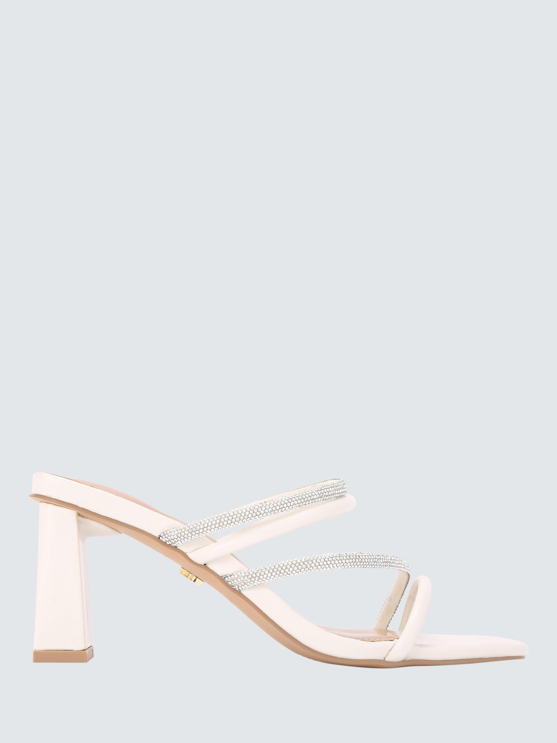 KG Kurt Geiger Sasha Mules offer versatile elegance for warm weather styling. These women's sandals feature sparkling diamante straps and a durable canvas upper construction. Sitting atop a comfortable 7cm block heel, they are perfect for pairing with flowing skirts. This is a refined addition to your summer footwear collection.