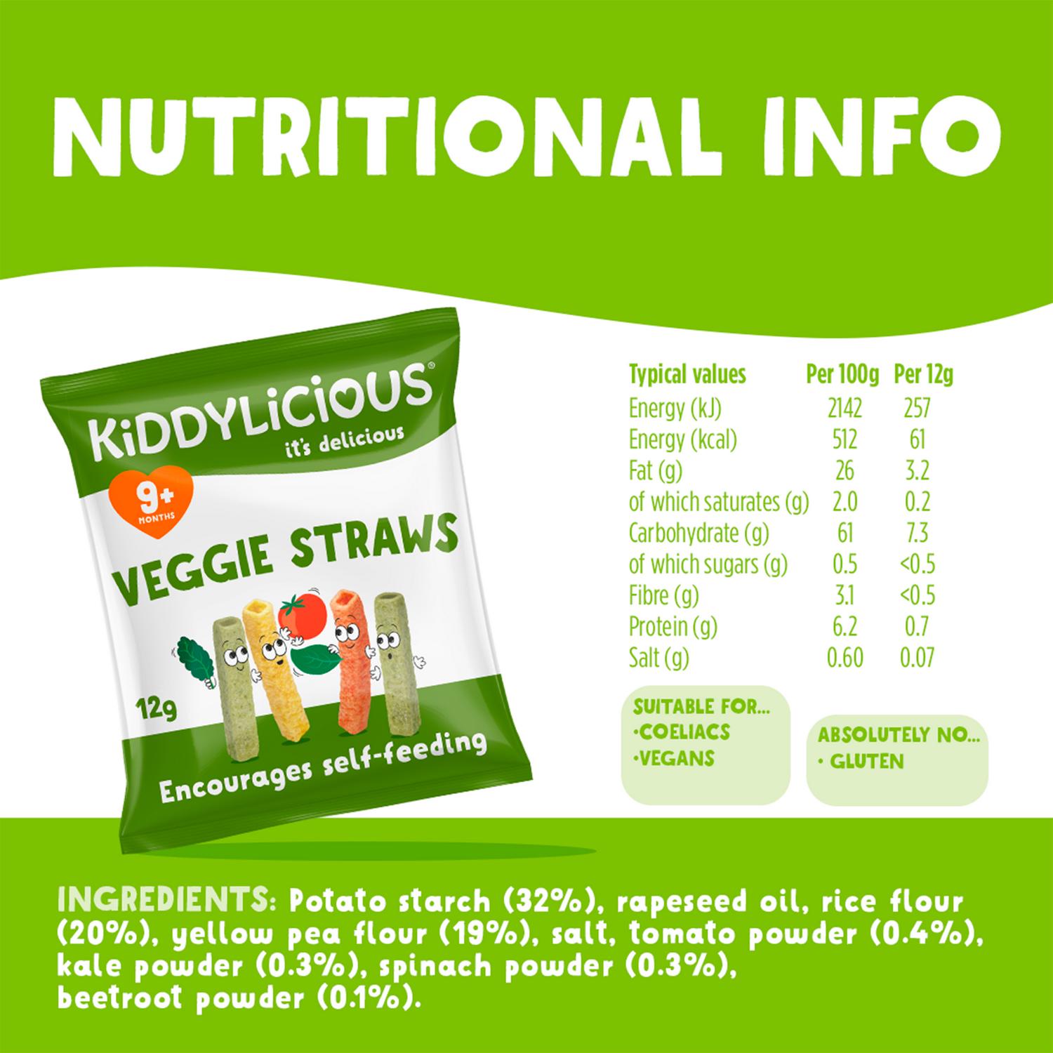 These Kiddylicious Veggie Straws are a potato, rice, and pea-based snack designed for little ones. The convenient 4x12g multipack ensures portions are controlled for easy management. Their hollow straw shape makes them easy for small hands to grip, promoting independent self-feeding skills.