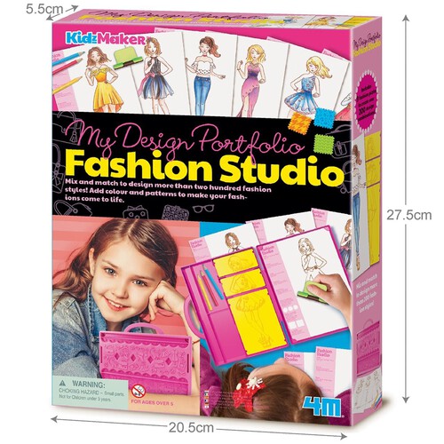 This KidzMaker Fashion Studio enables young enthusiasts to make their creative dreams a reality by stepping into the role of a fashion designer. It provides all the necessary tools to easily draw and illustrate truly fabulous fashion creations. This engaging set is specifically designed to inspire creativity through a tangible, hands-on crafting experience right at home.