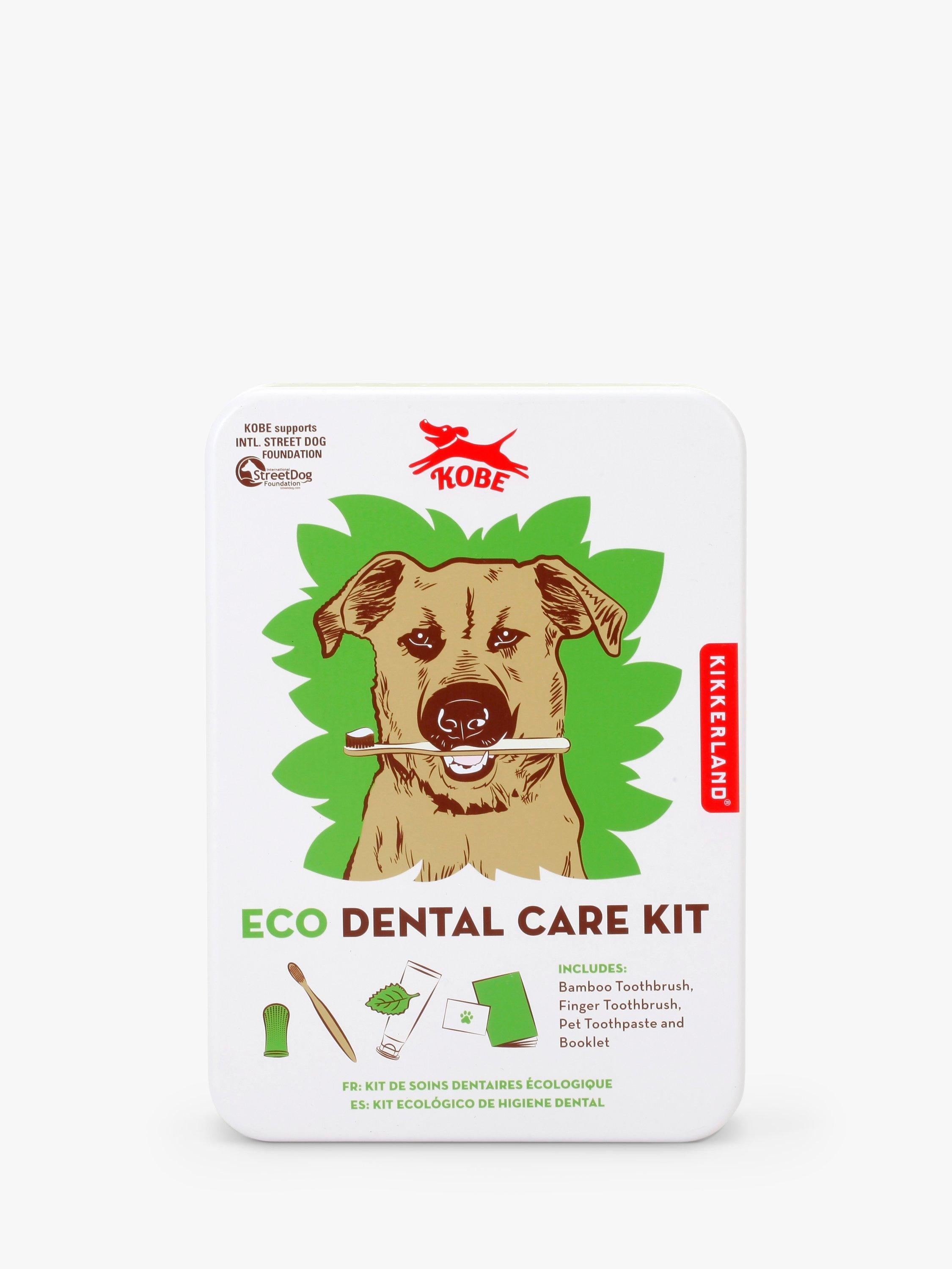 Kikkerland presents the Kobe Dog Dental Care Kit for essential canine oral hygiene. This comprehensive set includes a bamboo toothbrush, a convenient finger brush, and specially formulated pet toothpaste. The included helpful booklet offers guidance for effective daily cleaning routines, ensuring your dog maintains healthy teeth and fresh breath effortlessly.